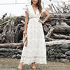 Fleepmart 2022 Summer Boho Women Maxi Dress Embroidery Short Sleeve Vocation Sexy White Lace Tunic Long Beach Dress