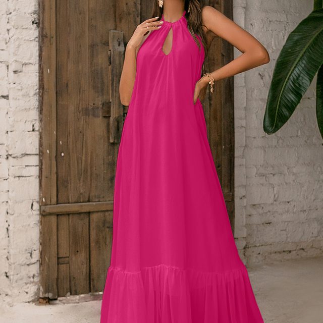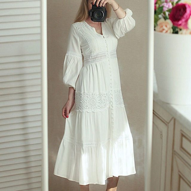 Fleepmart 2022 Summer Boho Women Maxi Dress Vintage Hollow Out White Lace Tunic Beach Dress