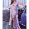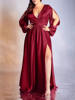 Fleepmart 2022 Summer Elegant Women Long Party Dress Long Sleeve Vintage Red Slit Maxi Satin Slip Dress Plus Size 3XL 4XL 5XL