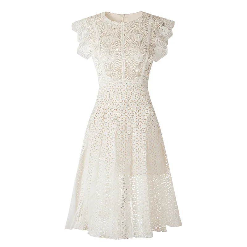 Fleepmart 2022 Summer Luxury Women Lace Party Dress Short Sleeve Vintage Elegant Lady Sexy Midi Dress