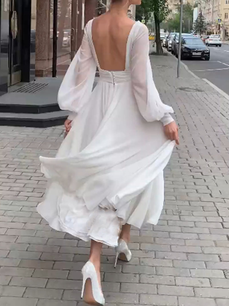 Fleepmart 2022 Summer Vintage Women Maxi Dress Long Sleeve Sexy Backless Vocation Tunic Long Beach Dress