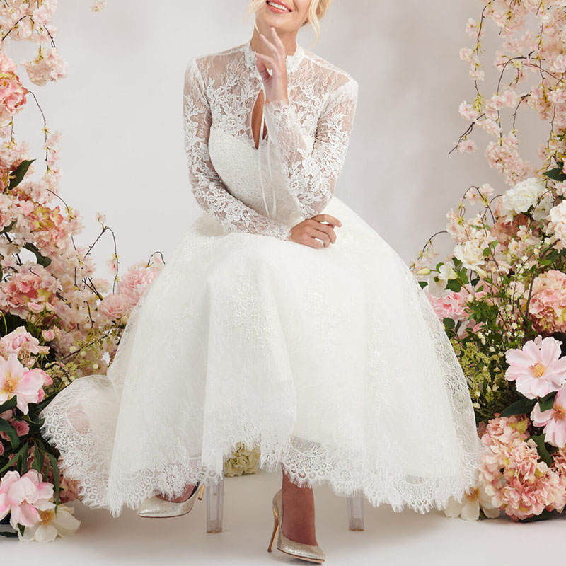 Fleepmart 2022 Summer Women Lace Party Dress Long Sleeve White Lace A Ling Swing Dress Sexy Elegant Evening Midi Dress