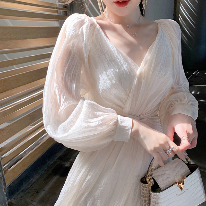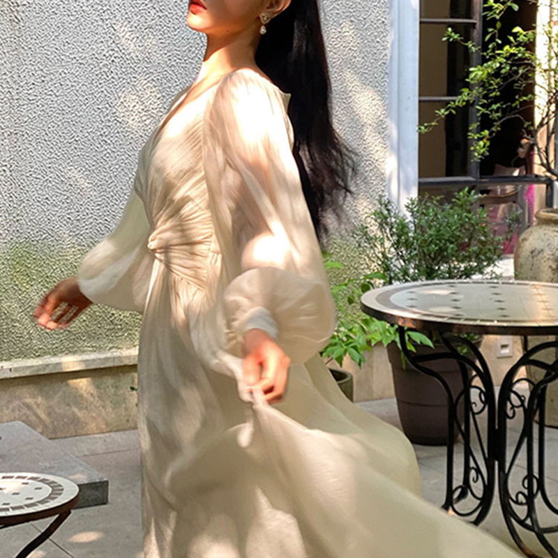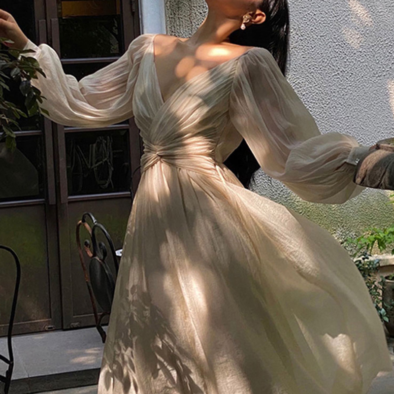 Fleepmart 2022 Summer Women Maxi Party Dress Long Slevee Solid Loose Casual Long Tunic Beach Dress