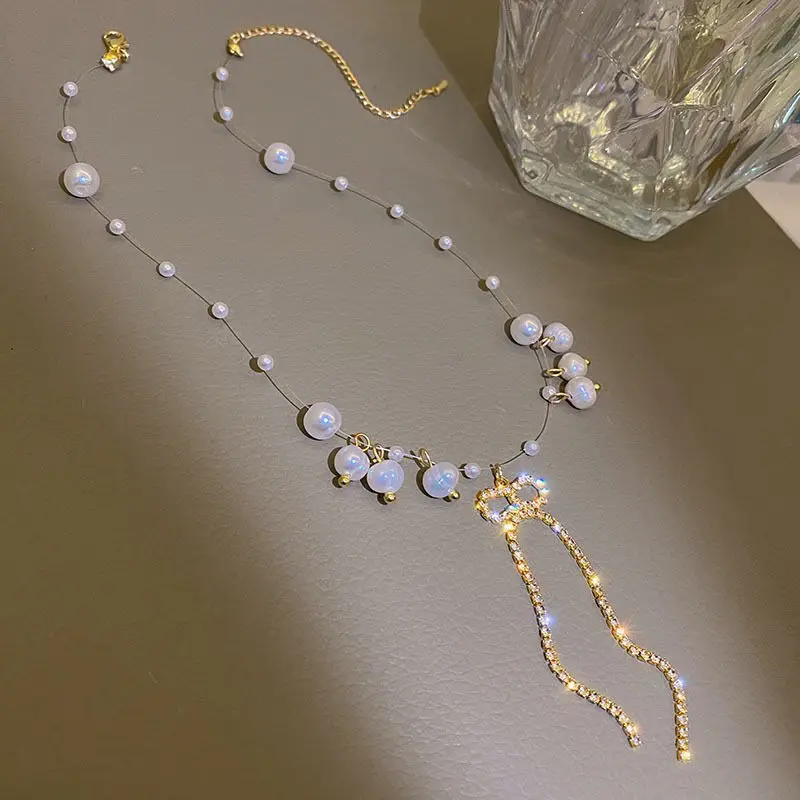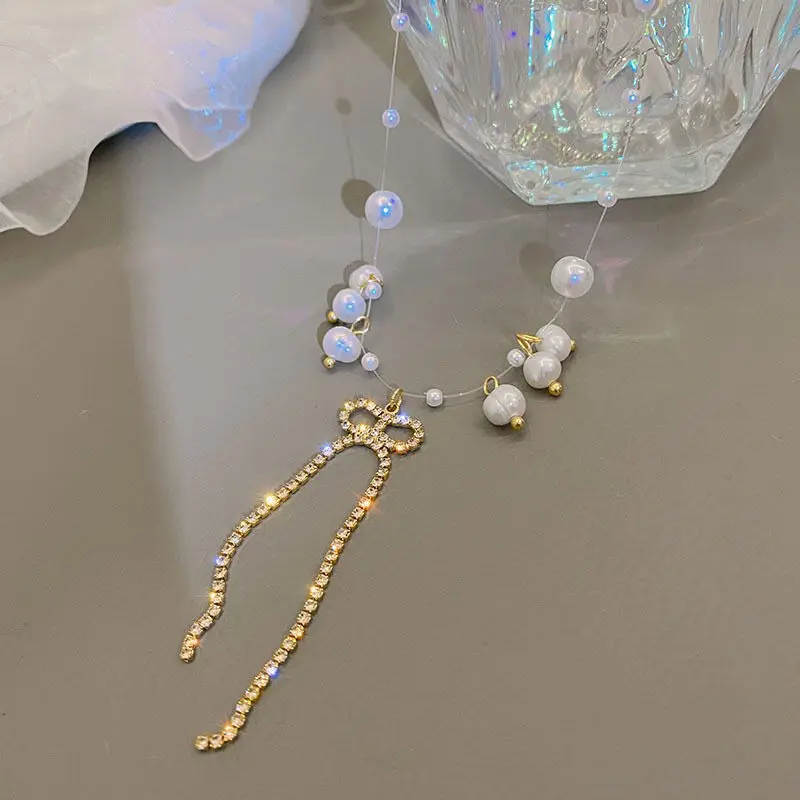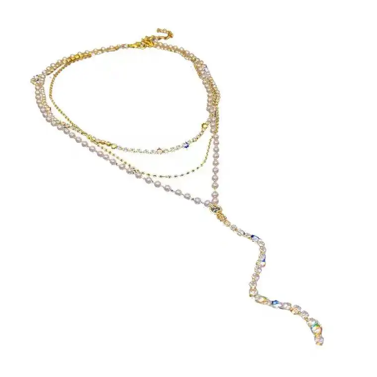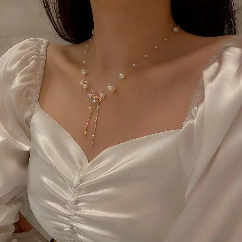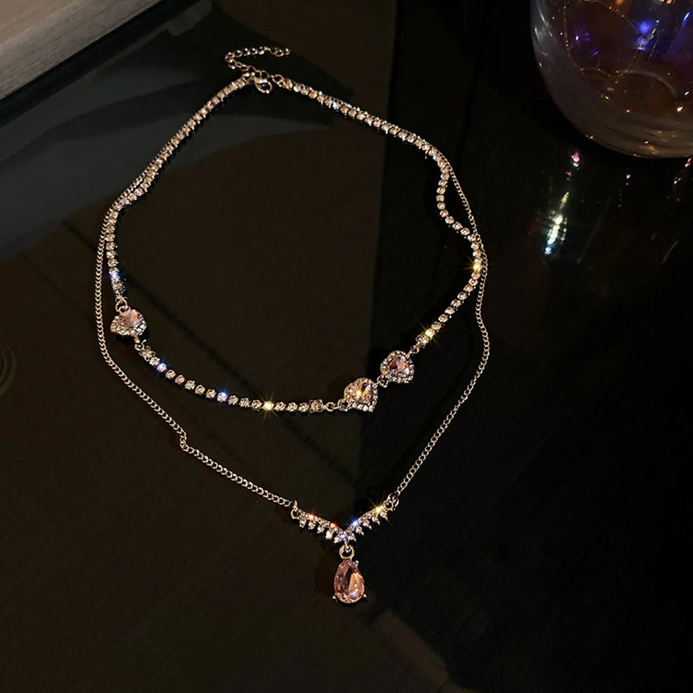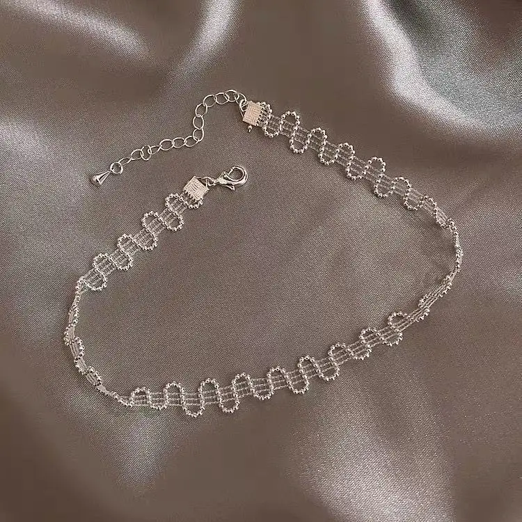 Fleepmart 2022New Fashion Sparkling Starry Choker Necklace For Women Anniversary Bridal Wedding Clavicle Flat Chain Necklace