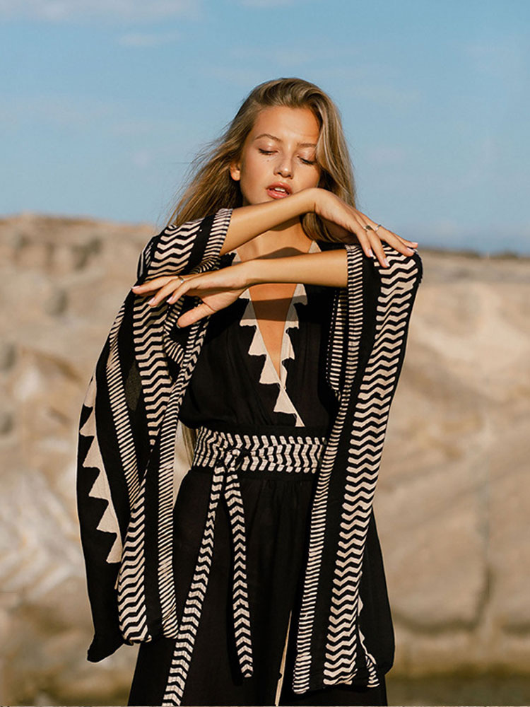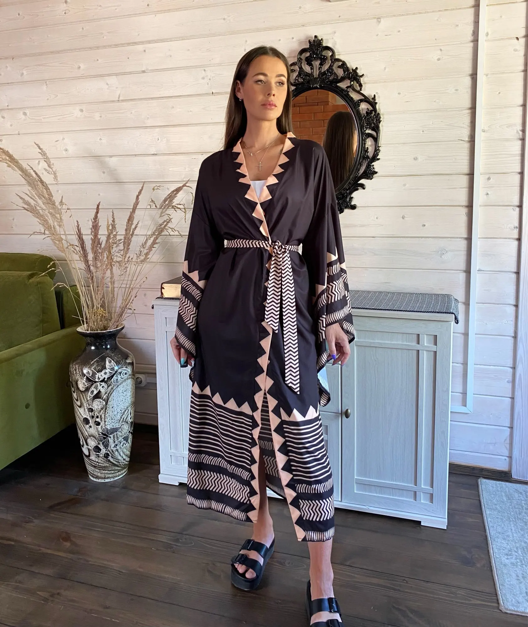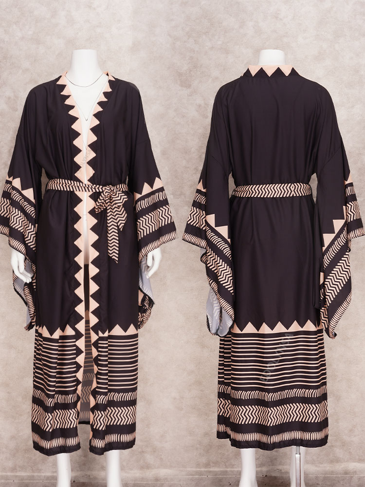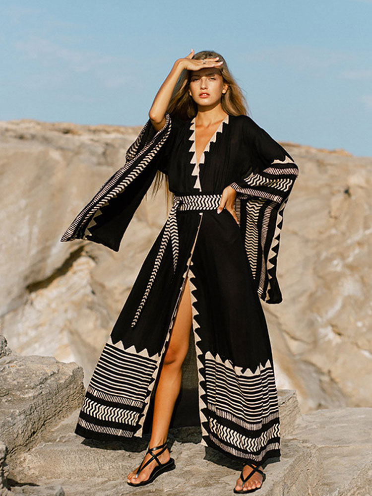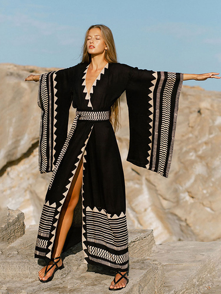 Fleepmart 2023 Bohemian Casual Long Kimono Cardigan Tunic Spring/Autumn Women Front Open Sashes Holiday Beach Dress Vestidos