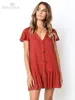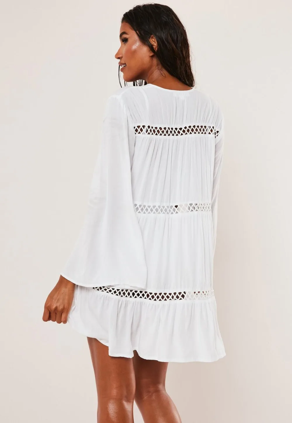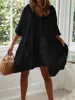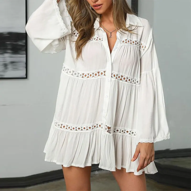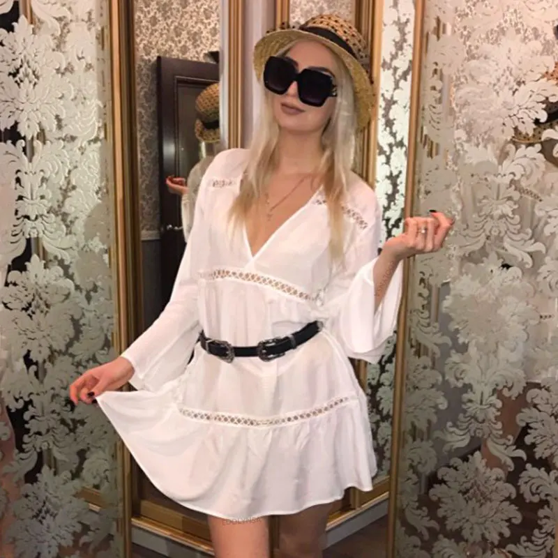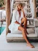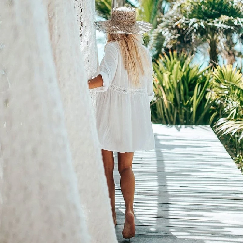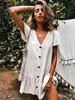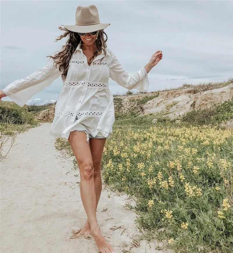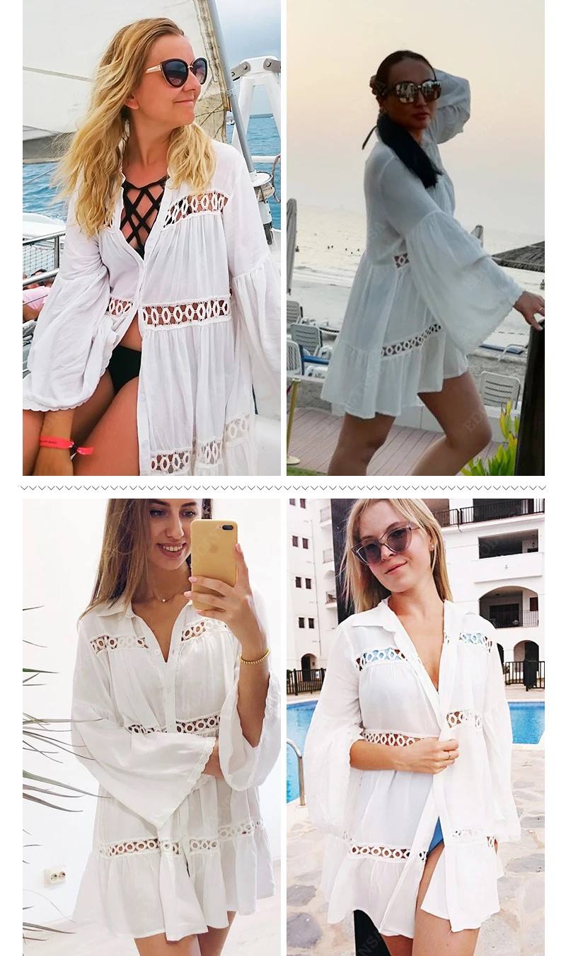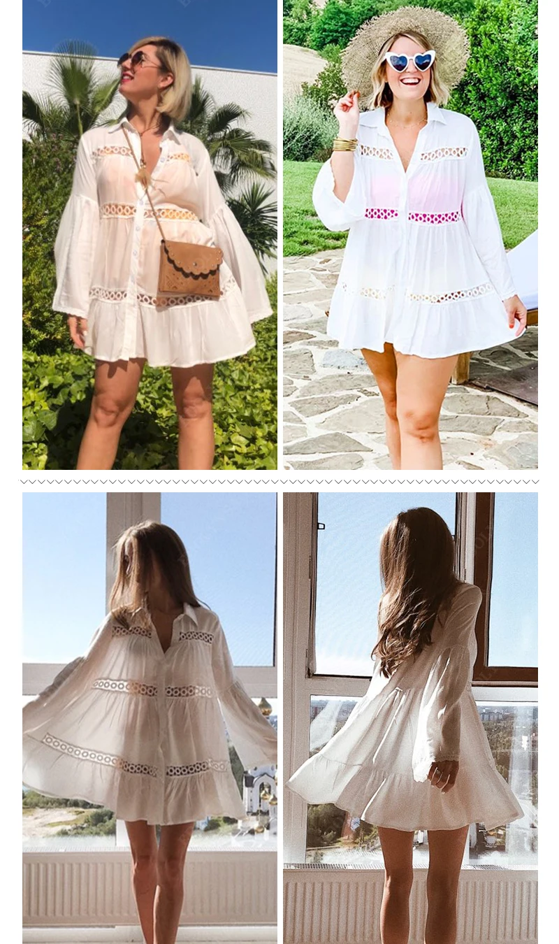 Fleepmart 2023 Casual Loose Summer Beach Dress White Cotton Tunic Plus Size Women Beachwear Sexy Hollow Out Mini Party Dress Vestidos