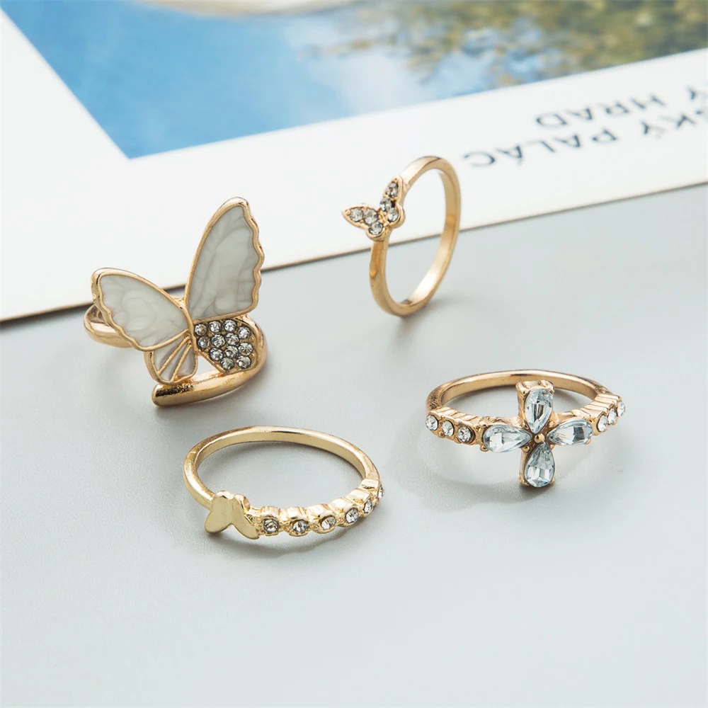 fleepmart 2023 Fashion Big Acrylic Butterfly Knuckle Ring Set for Women Vintage Golden Crystal Geometric Knuckle Ring Jewelry Gift