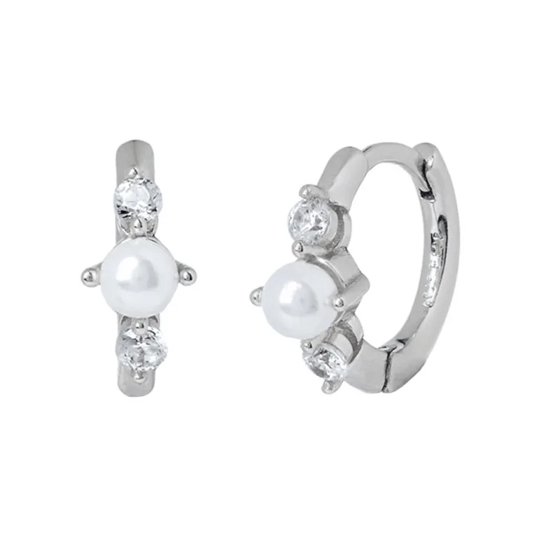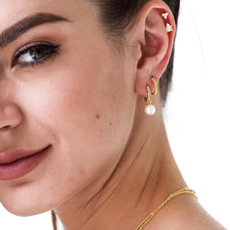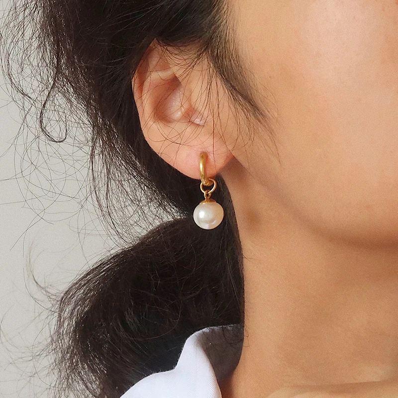 Fleepmart 2023 New Design Gold Color Stainless Steel Pearl Hoop Earrings For Women Cubic Zirconia Piercing Earring Wedding Korean Jewelry