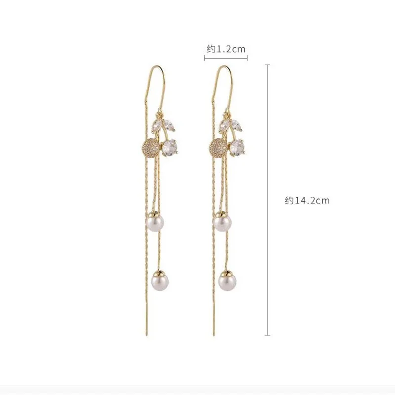 Fleepmart 2023 New Fashion Korean Long Thread Tassel Drop Earrings For Women Gold Color Pearl Cherry Bohemian Earring Wedding Jewelry Gift