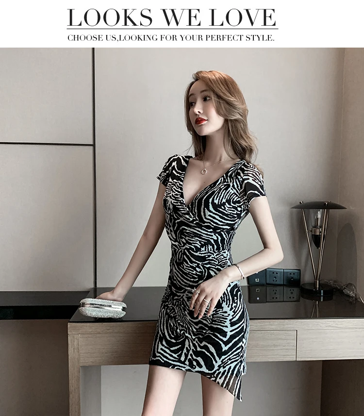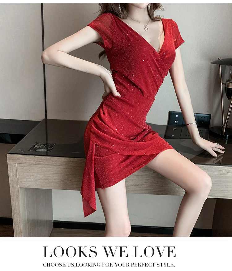 Fleepmart 2023 Summer Formal Dresses Solid Color Sequins Ruffle V-neck Short Sleeve Fold Dress Elegant Leopard Slim Bodycon Party Dress