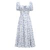 Fleepmart 2023 Sweet Off Shoulder Ruffle Dress Summer Vintage Floral Printed Dressess for Women French Square Collar Backless