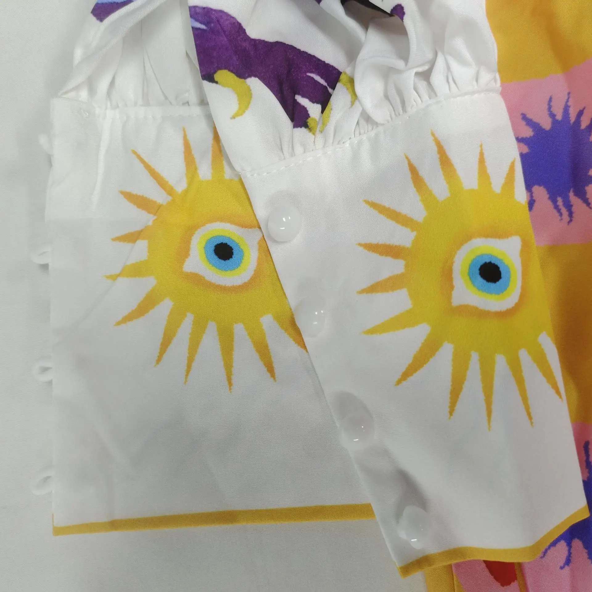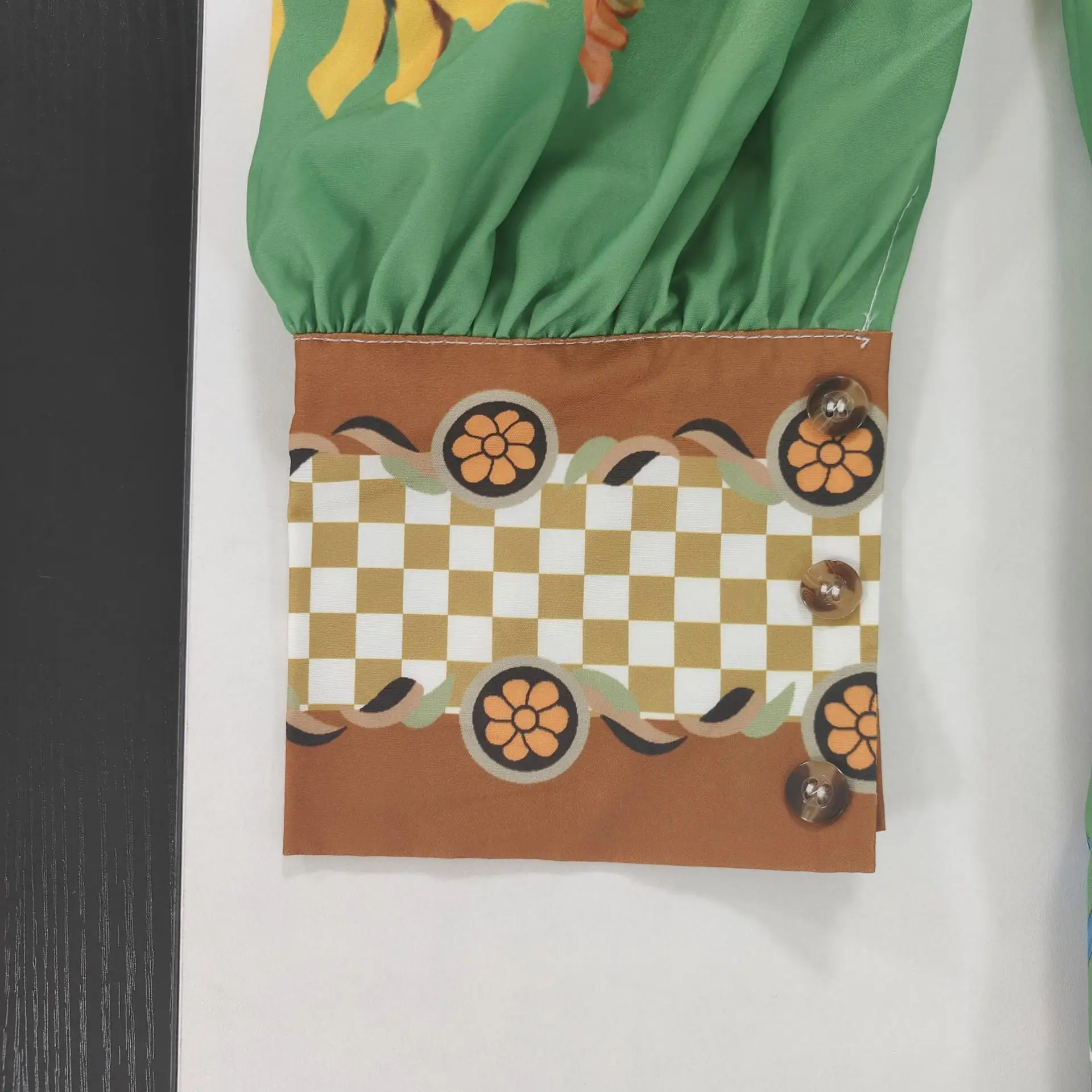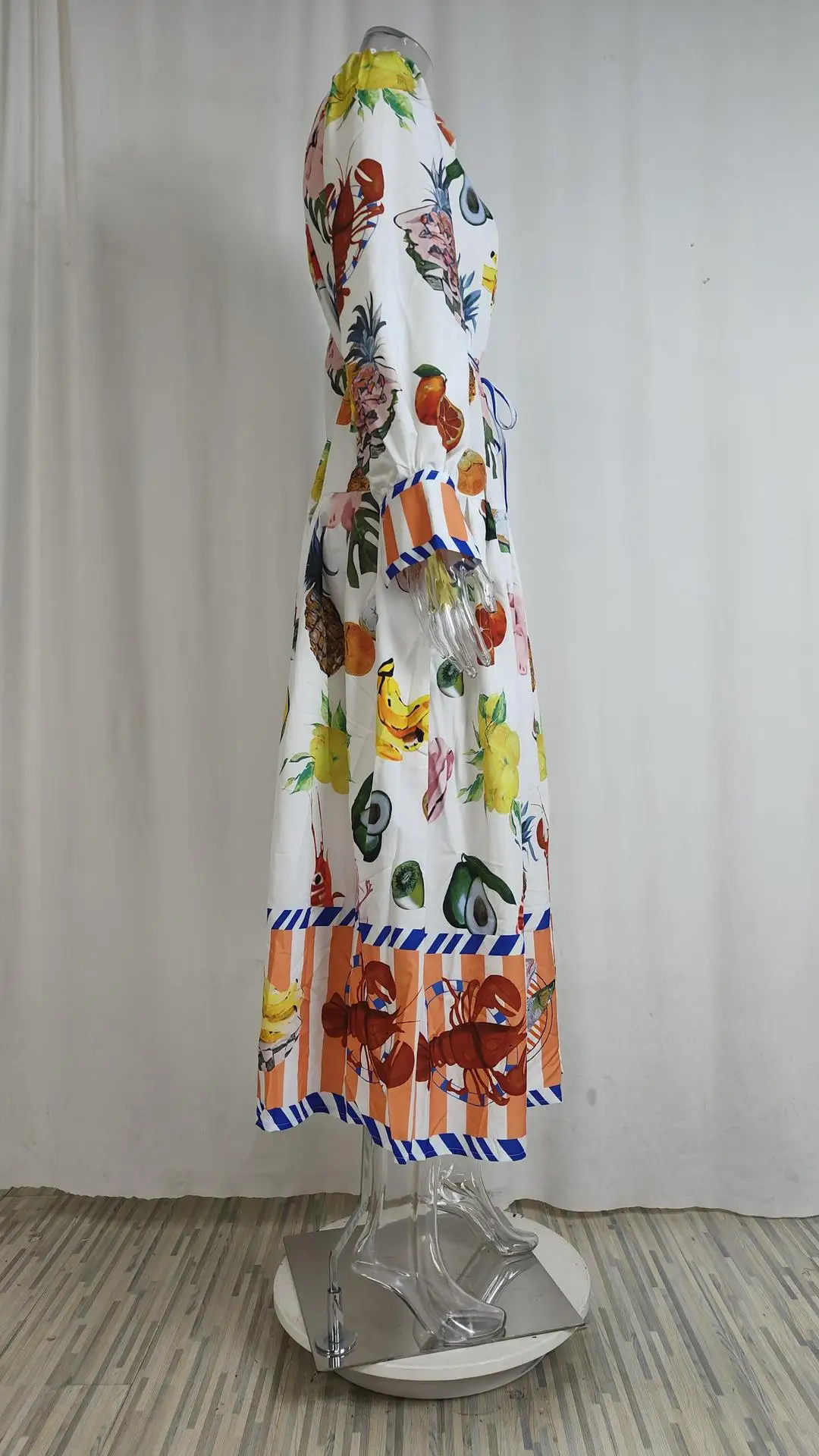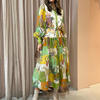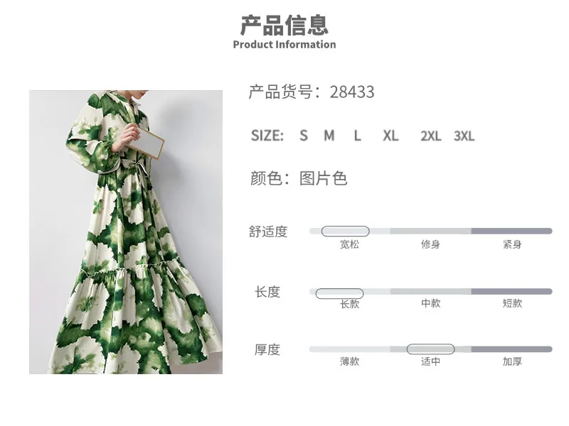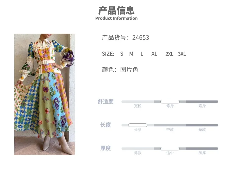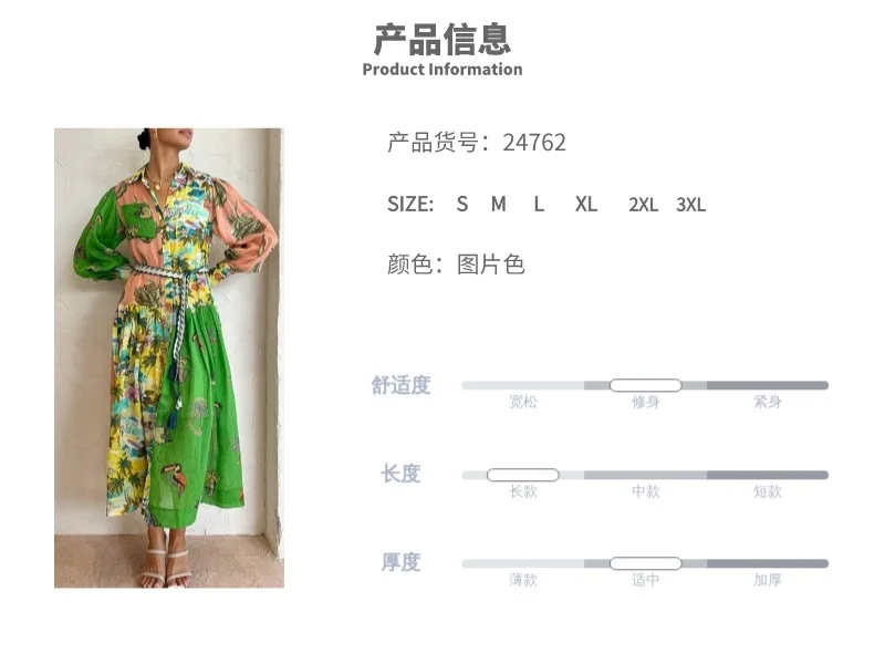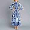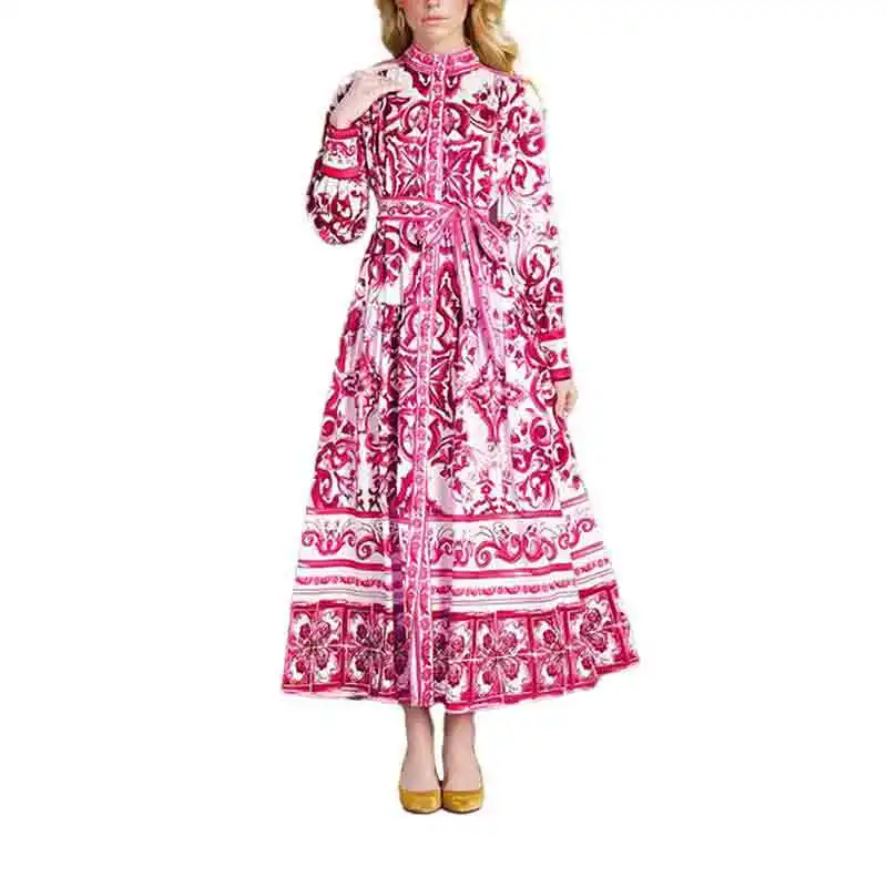 Fleepmart 2024 Autumn New Elegant and Fashionable Women’s Lantern Sleeve Printed Collar Large Swing Long Sleeve Dress