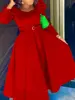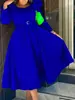 Fleepmart 2024 Autumn Stylish Women Evening Party Dress Long Puff Sleeve Elegant Pleated A-Line Gowns Birthday Wedding Celebrate Robes New