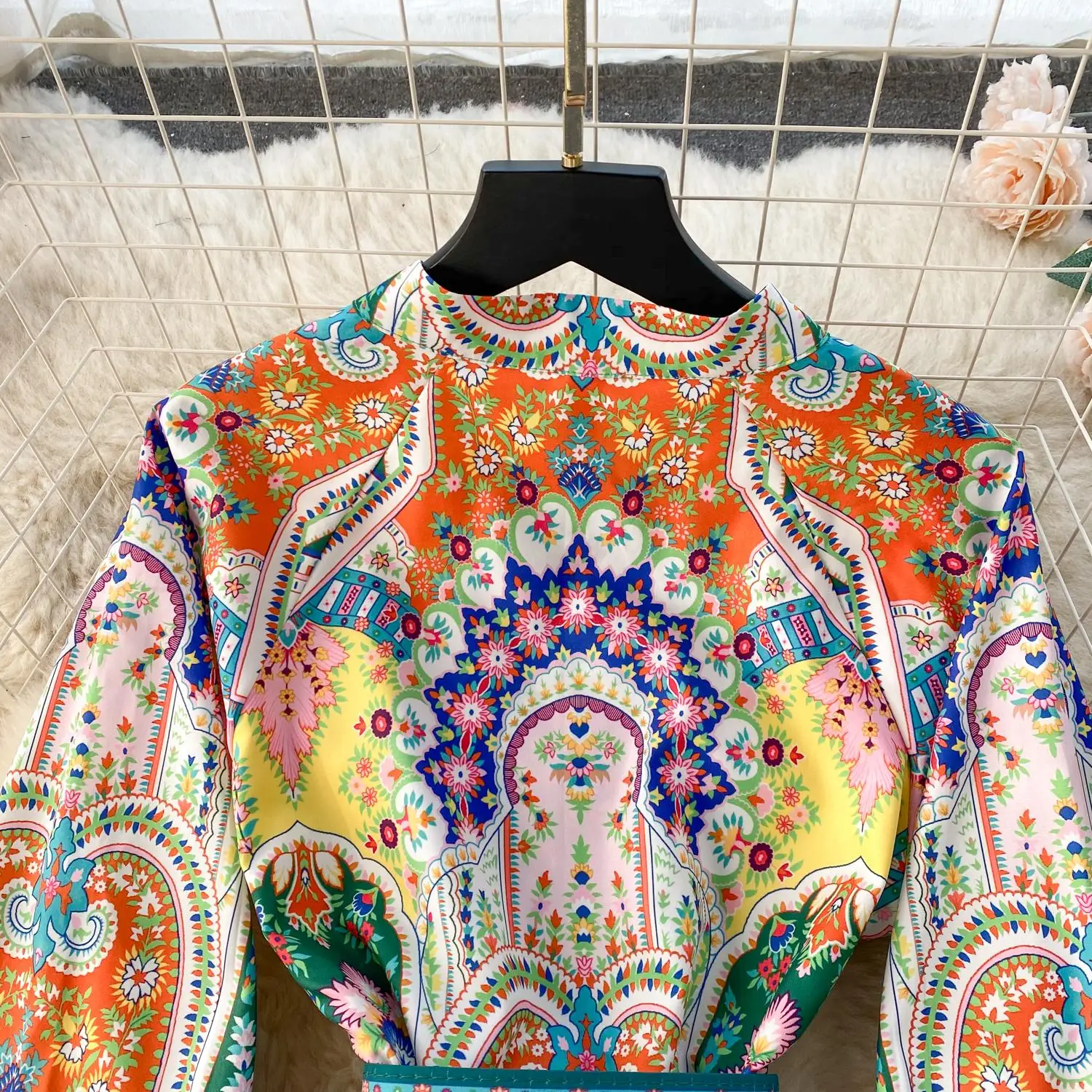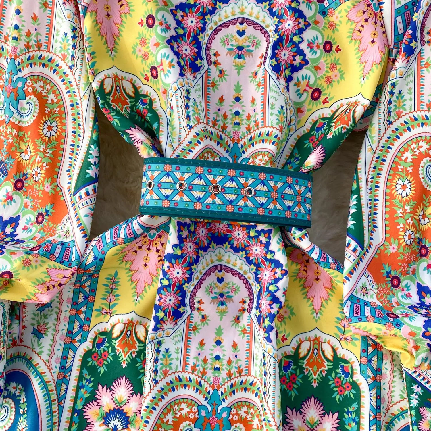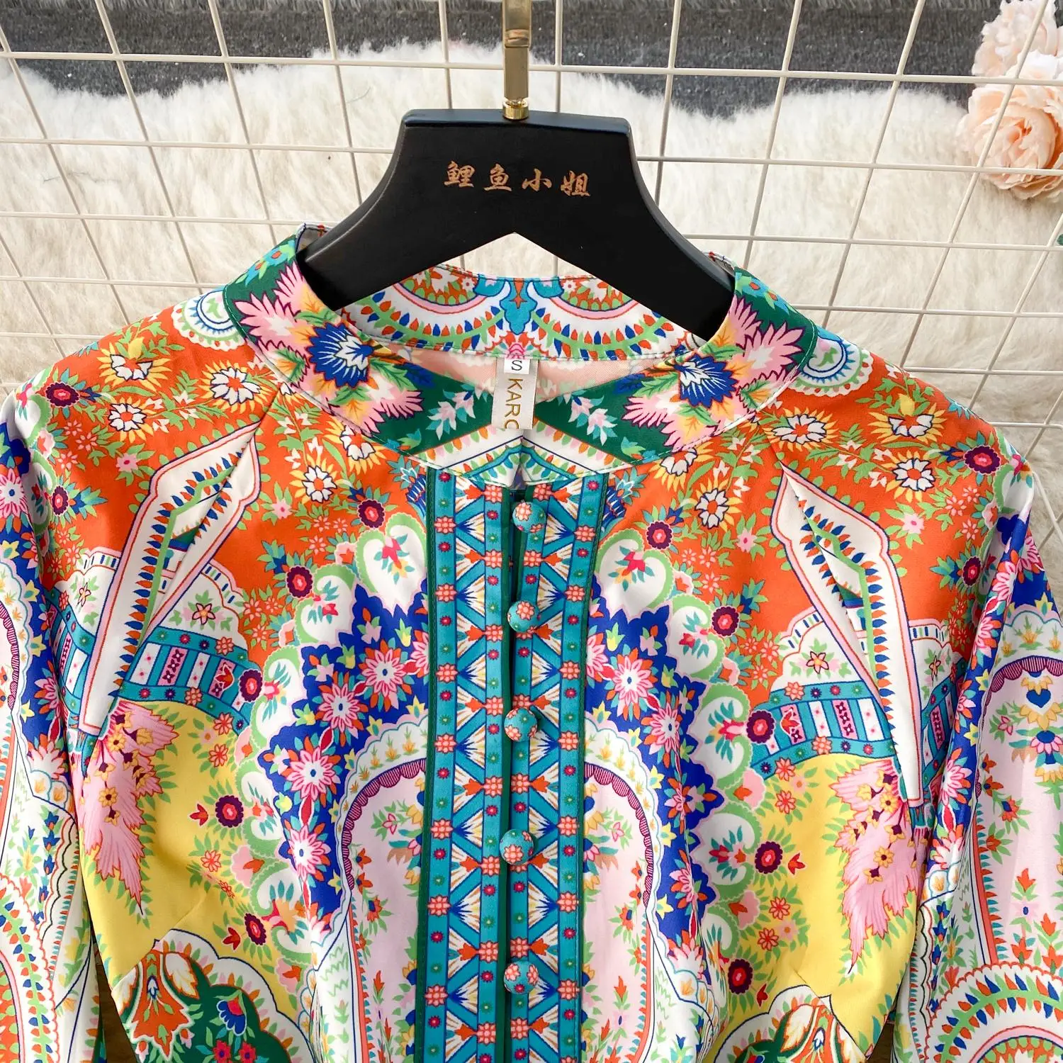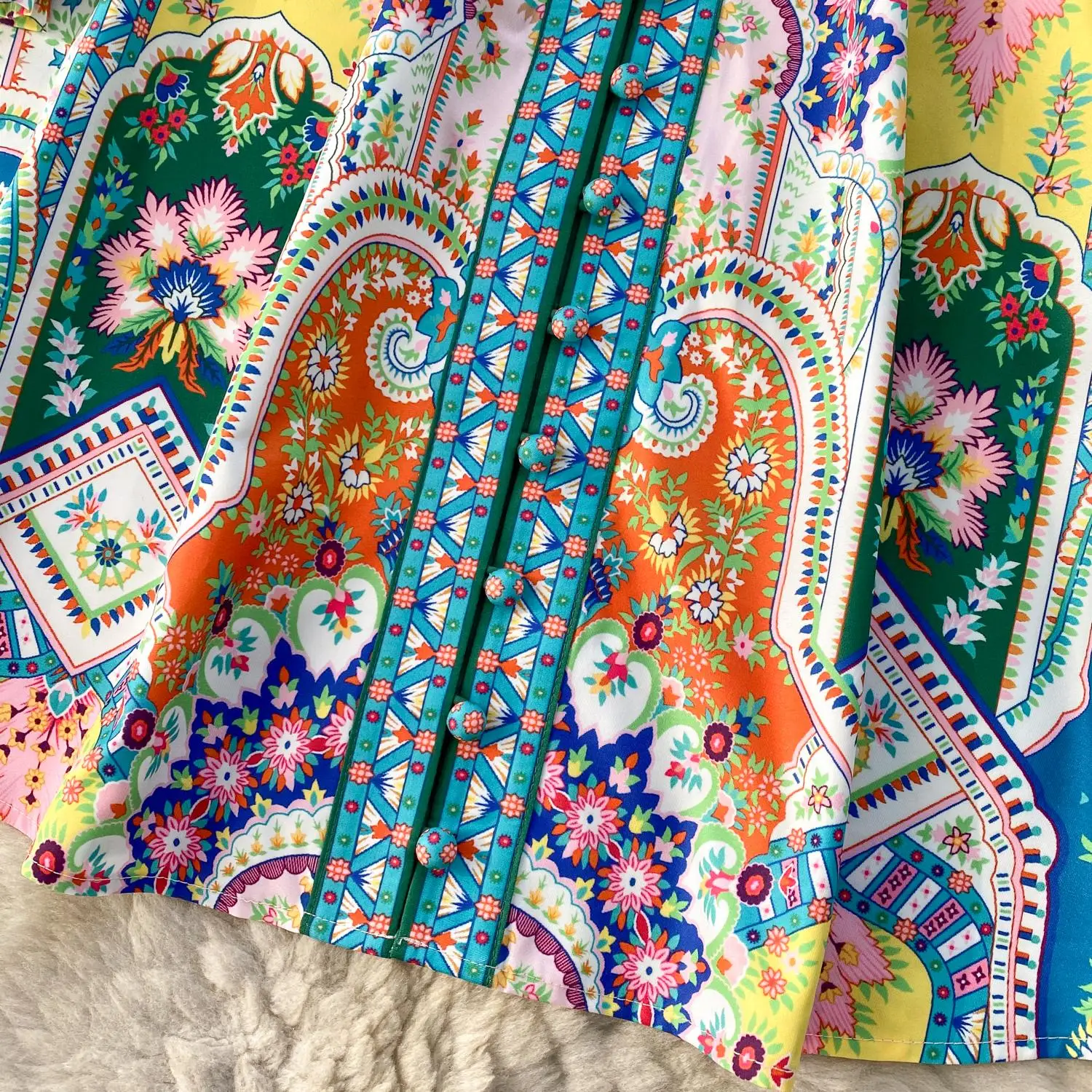Fleepmart 2024 Fashion Paisley Flower Print Short Dress Women’s Stand Single Breasted Long Lantern Sleeve Belt Vintage Mini Vestidos