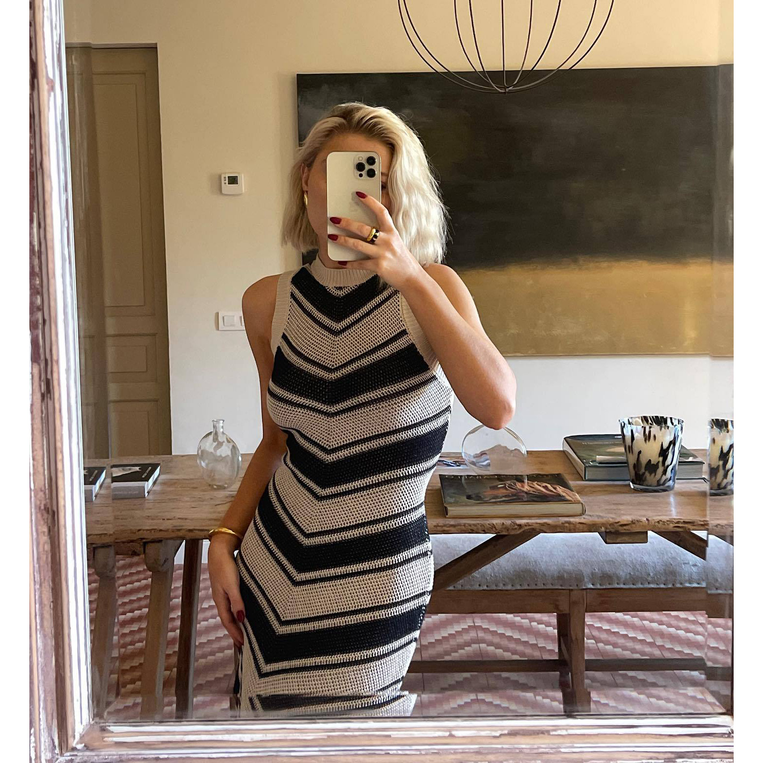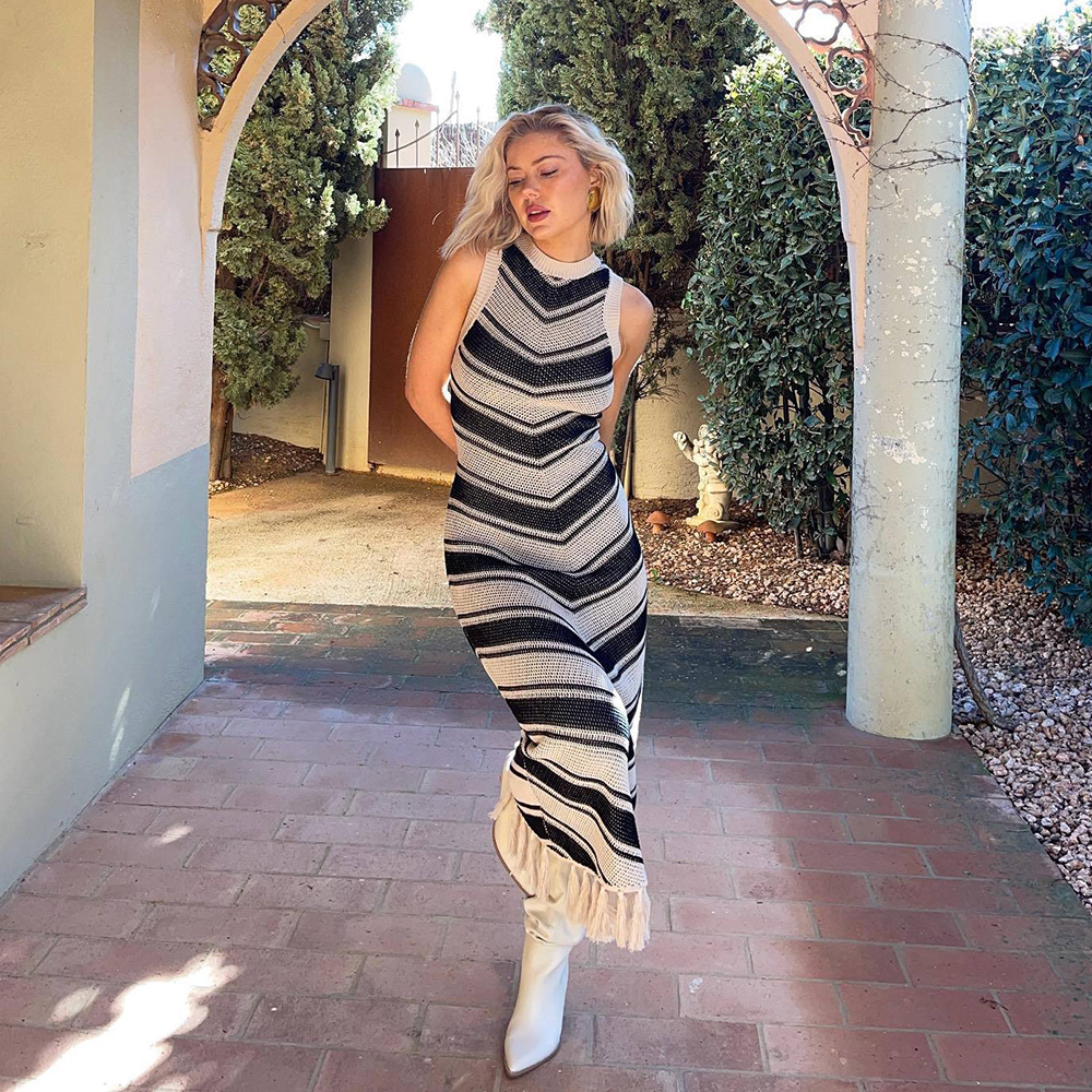 Fleepmart 2024 Knitted Sexy See Through Summer Dress Bikinis Cover-ups Mesh Beach Cover Up Maxi Tassel Bodycon Dress Slim Beachwear