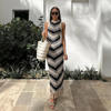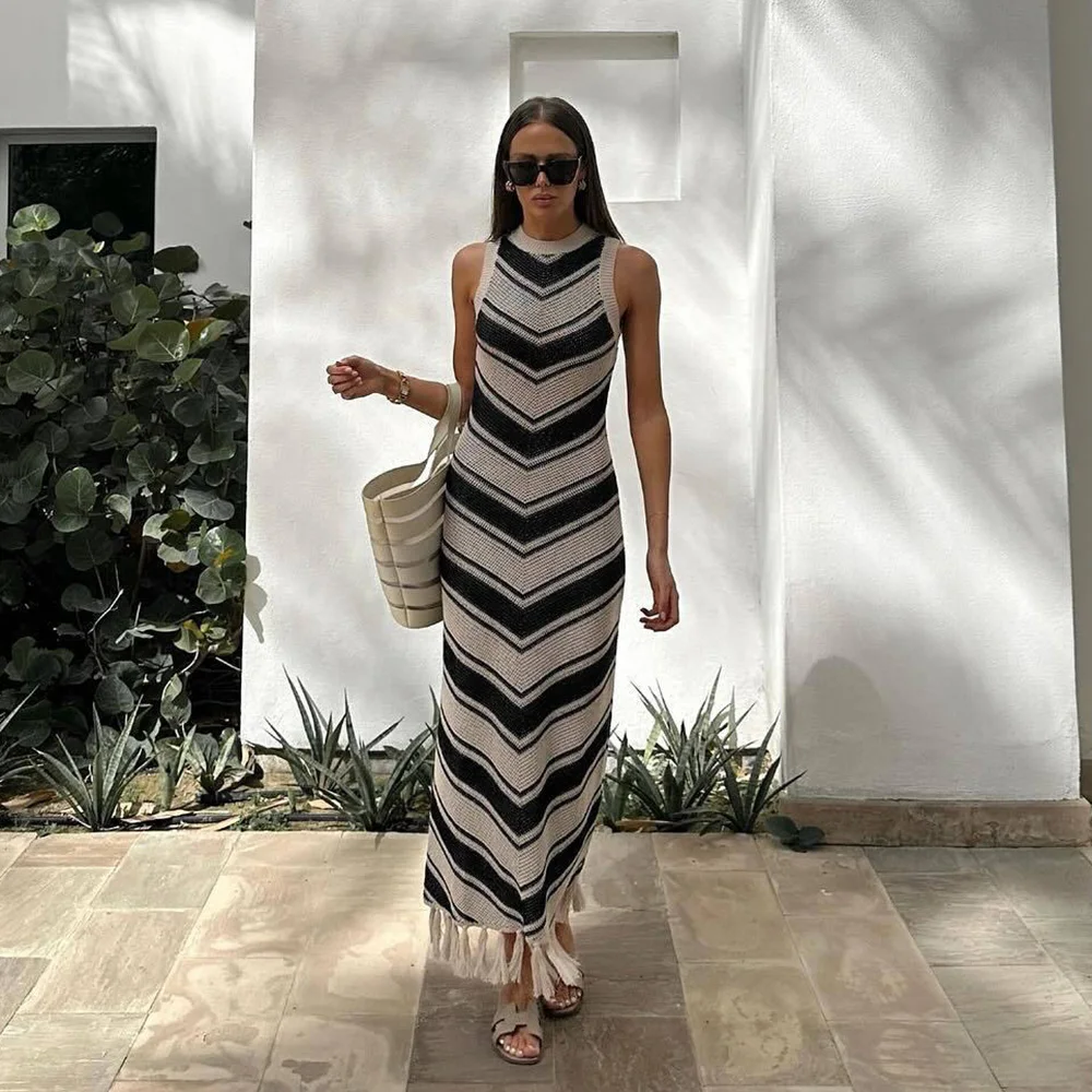 Fleepmart 2024 Knitted Sexy See Through Summer Dress Bikinis Cover-ups Mesh Beach Cover Up Maxi Tassel Bodycon Dress Slim Beachwear