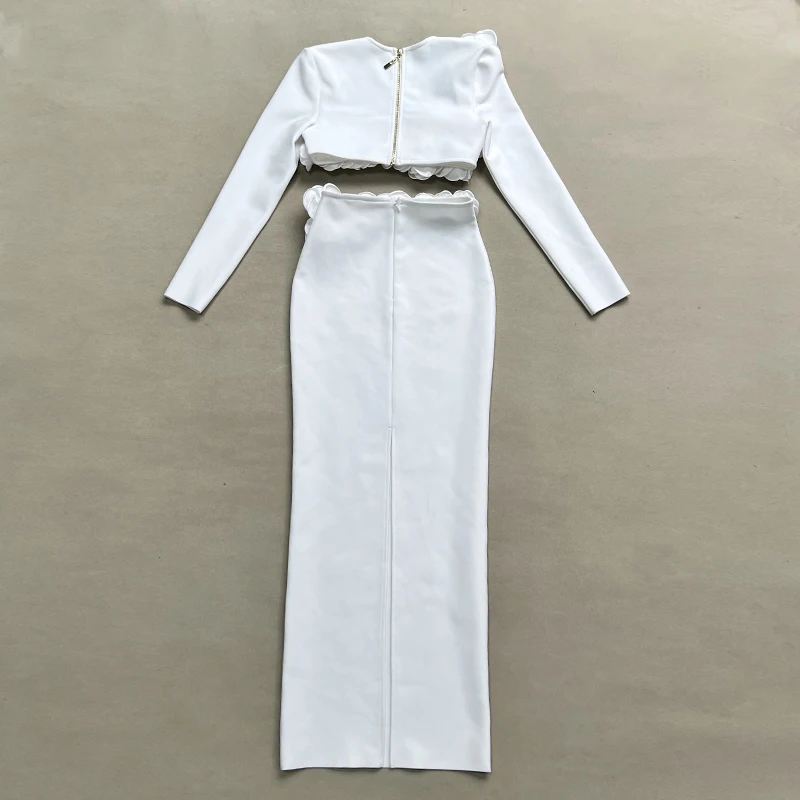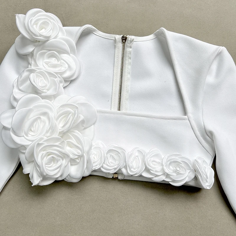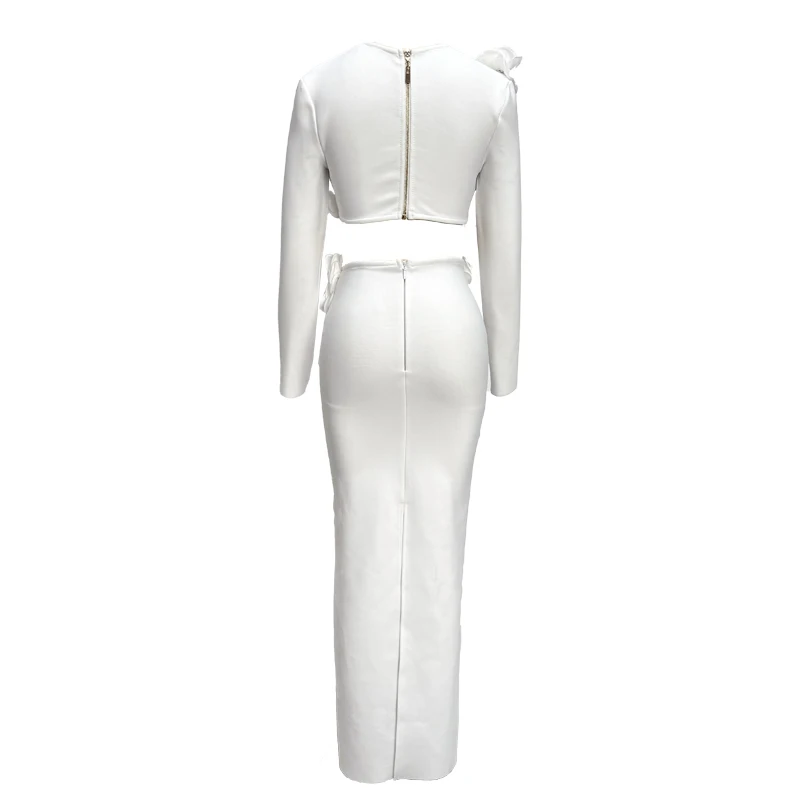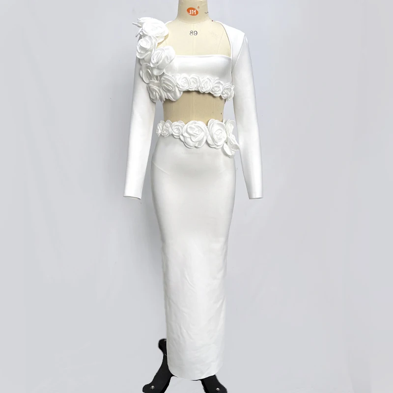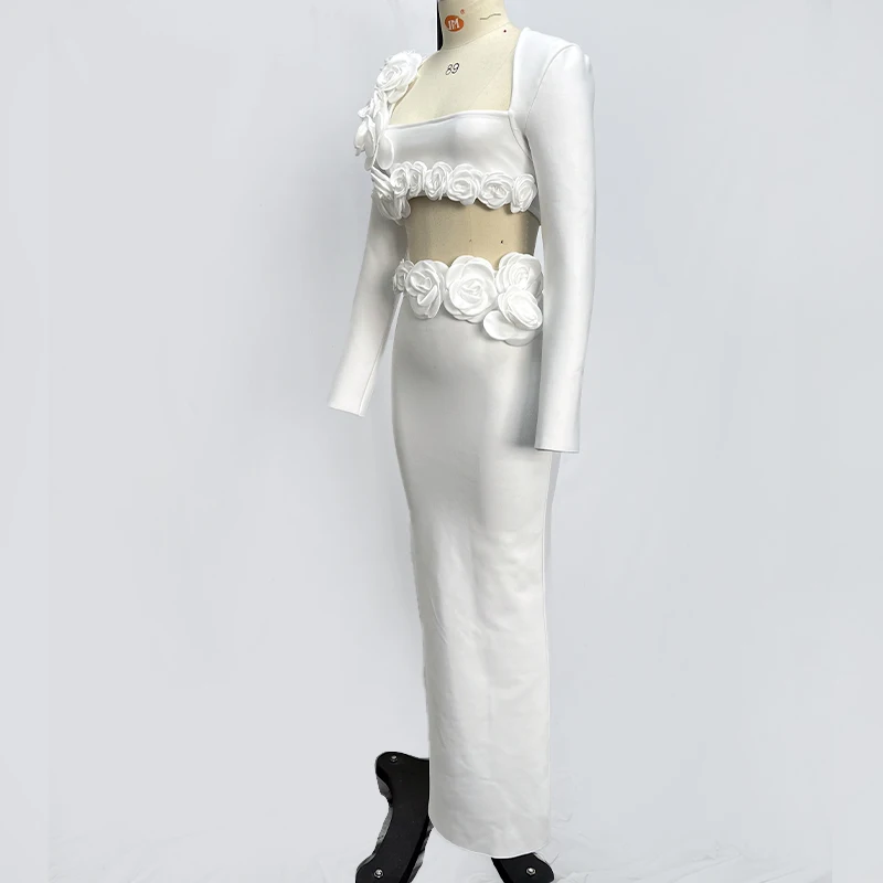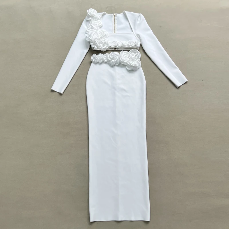 fleepmart 2024 New Arrival Women Long Sleeve Sexy Square Collar Flowers 2 Pieces Bodycon Long Bandage Dress Fashion Evening Party Dress