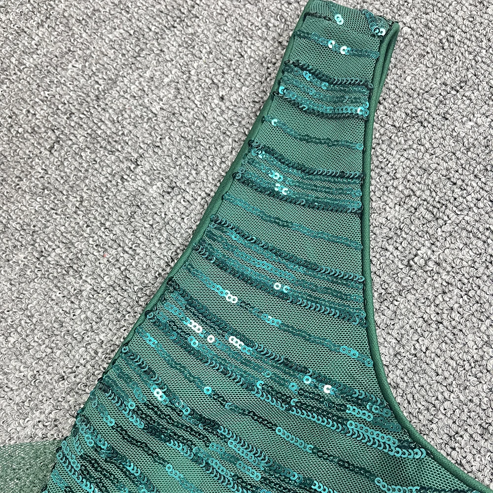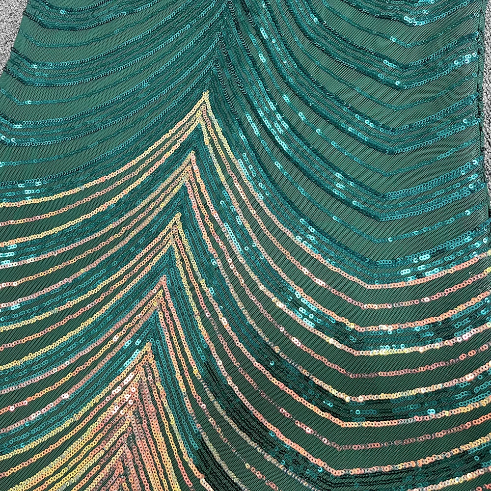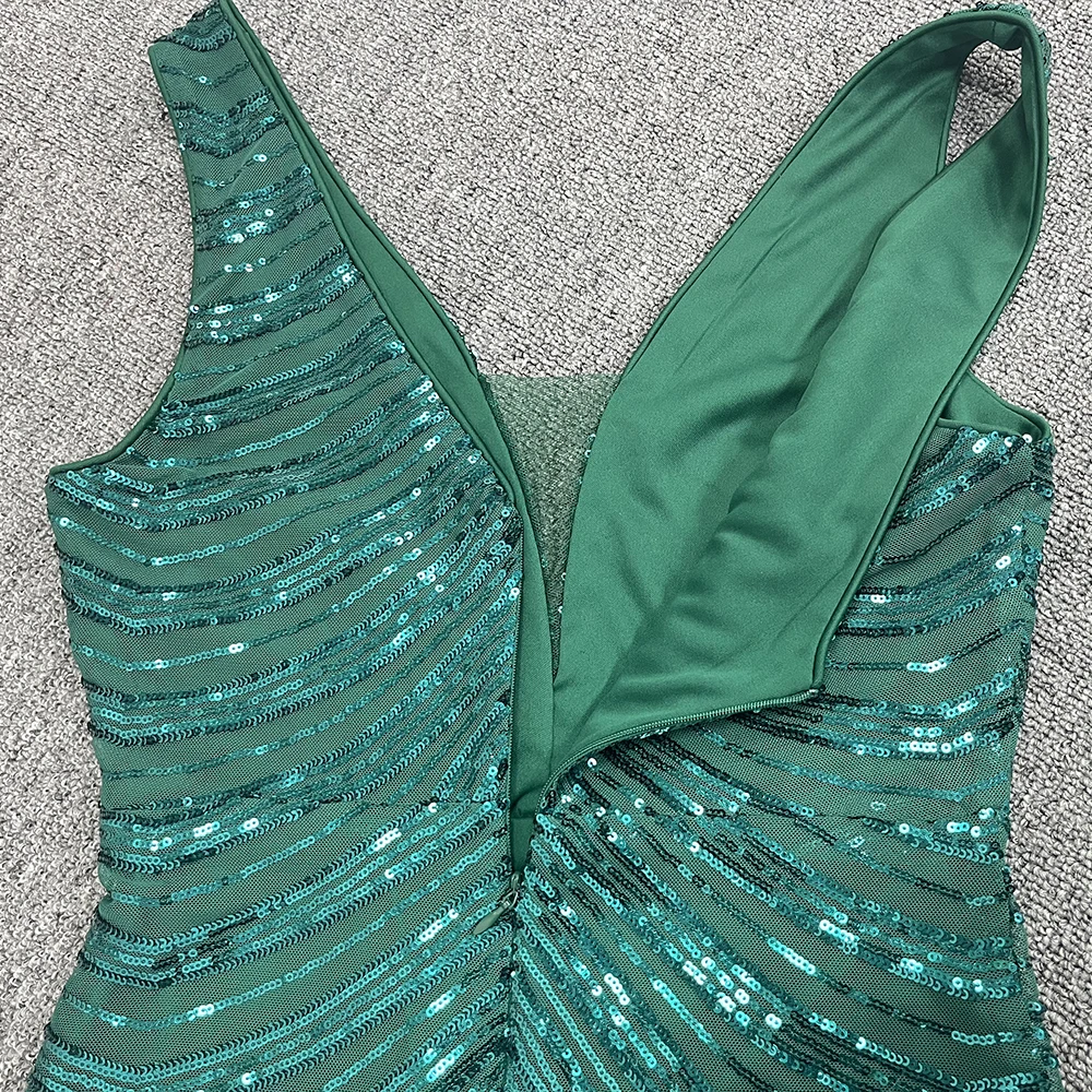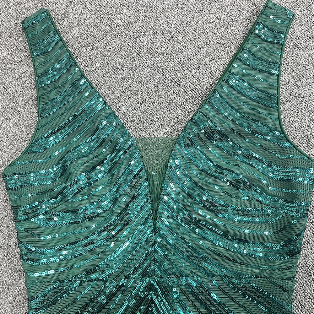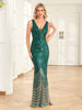 Fleepmart 2024 New Double V Neck Sleeveless Evening Dress Sexy Mermaid Women Party Gowns Green Gradient Sequins Floor Length Dress