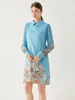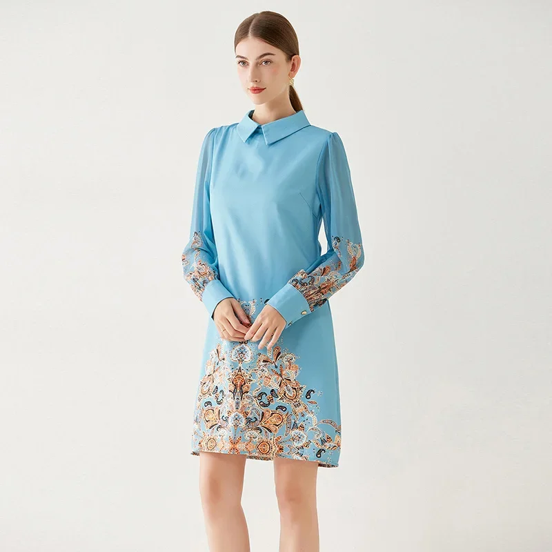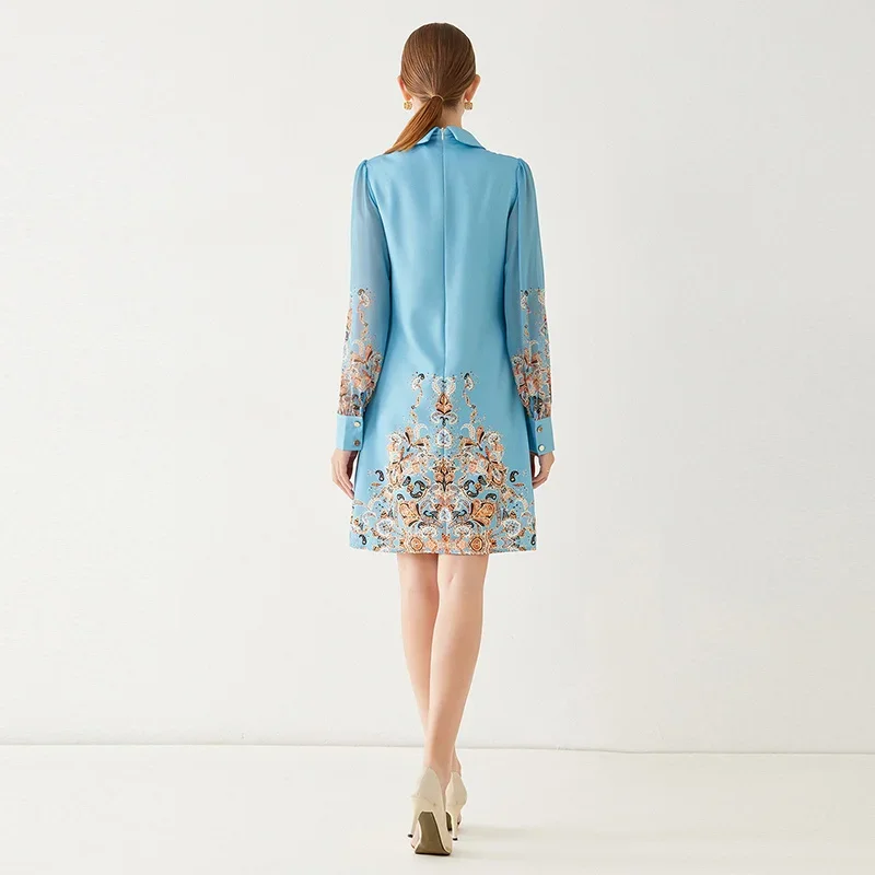 Fleepmart 2024 New Fashion Paisley Blue Mini Party Dress Women Long Sleeve Peter Pan Collar Floral Print A Line Vestidios