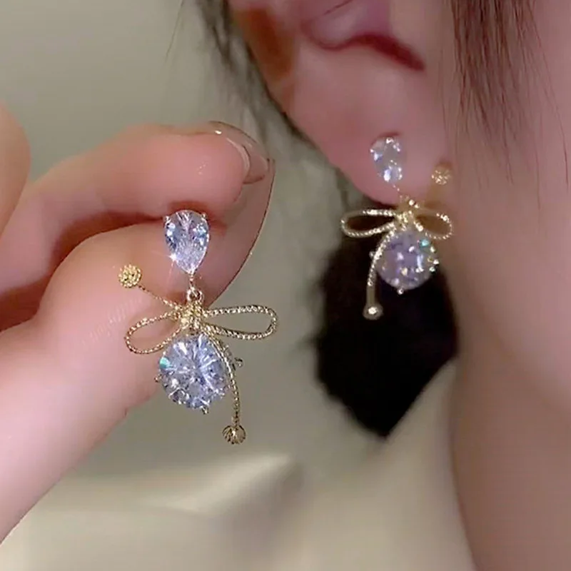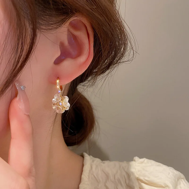 Fleepmart 2024 New Fashion Trend Unique Design Elegant Delicate Light Luxury Zircon Flower Round Earrings Women Jewelry Party Premium Gift