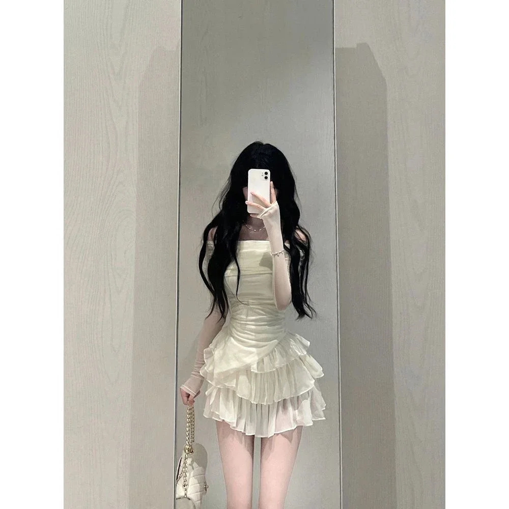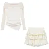 Fleepmart 2024 Spring Two Pieces Skirt Set Women Y2k Crop Tops T-shirt + Cake Skirts Japanese Kawaii Fashion Suits Chic Outwear Korean