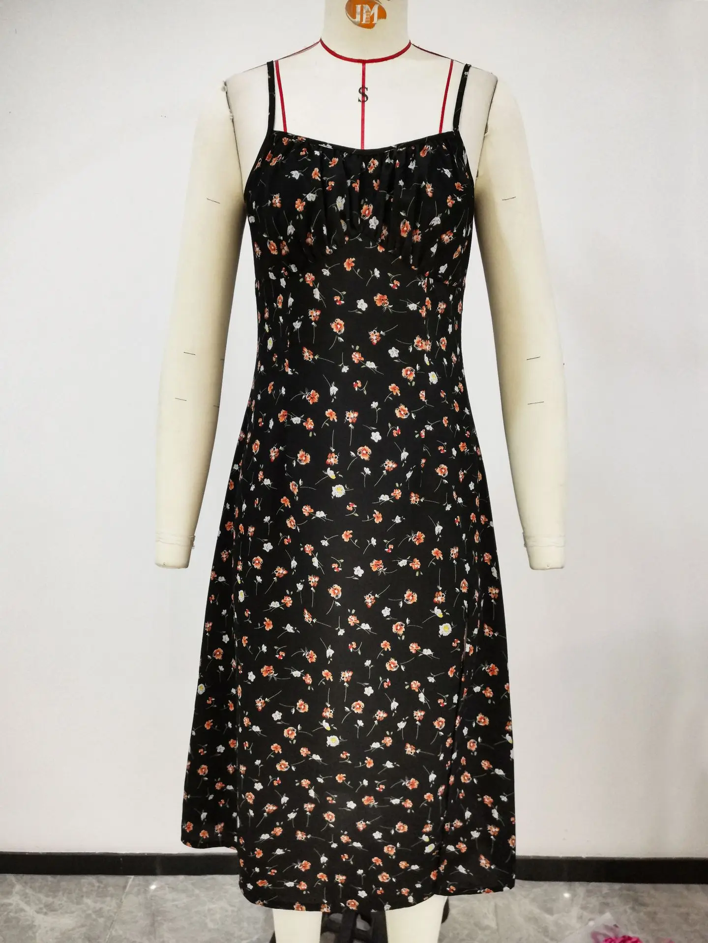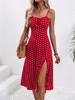 Fleepmart 2024 Summer Sexy Spaghetti Straps Dress Women Fashion Polka Dot Print Sleeveless Slit Dress Boho Casual Beach Midi Dresses