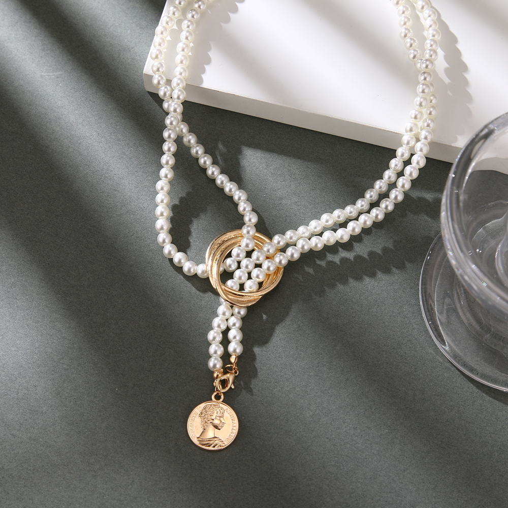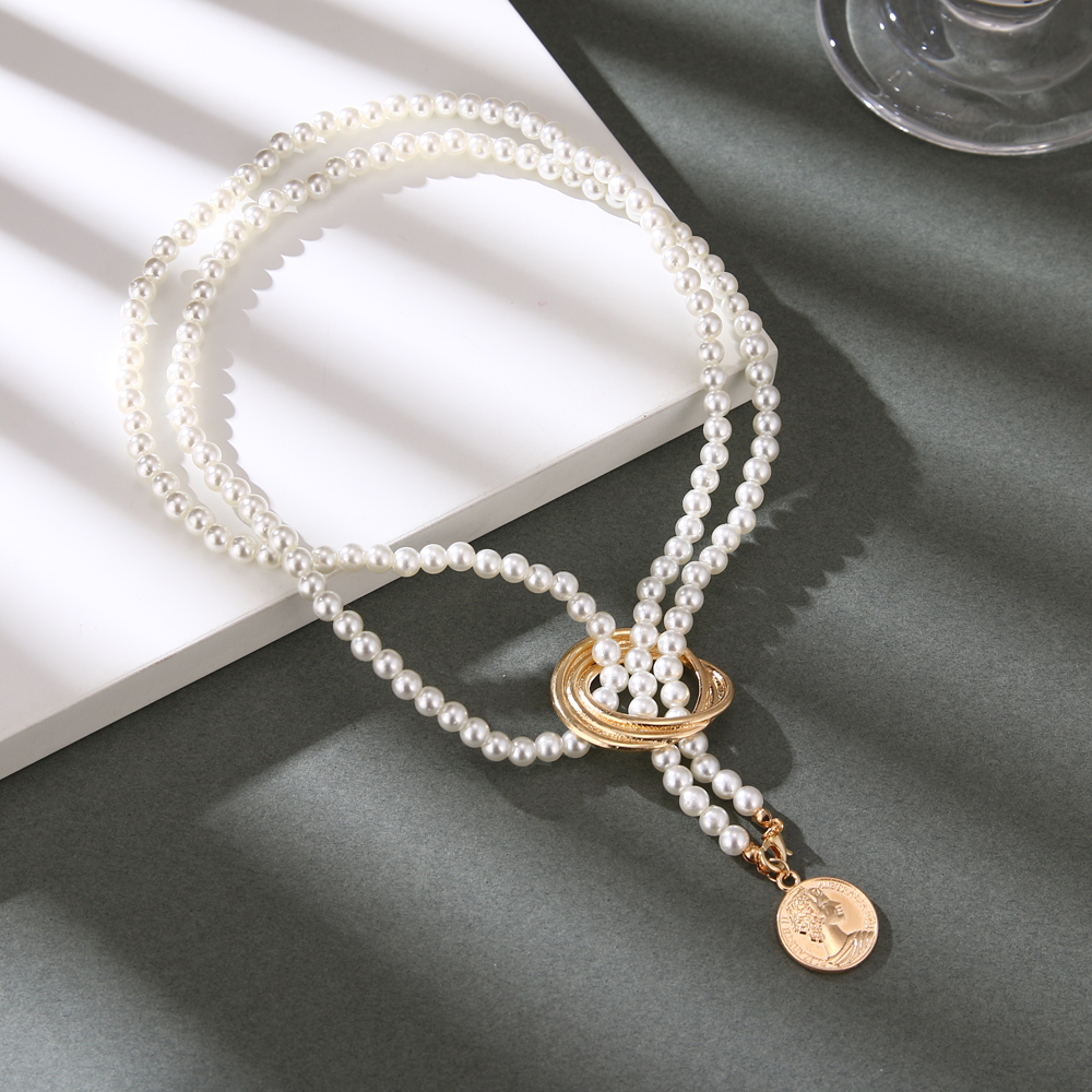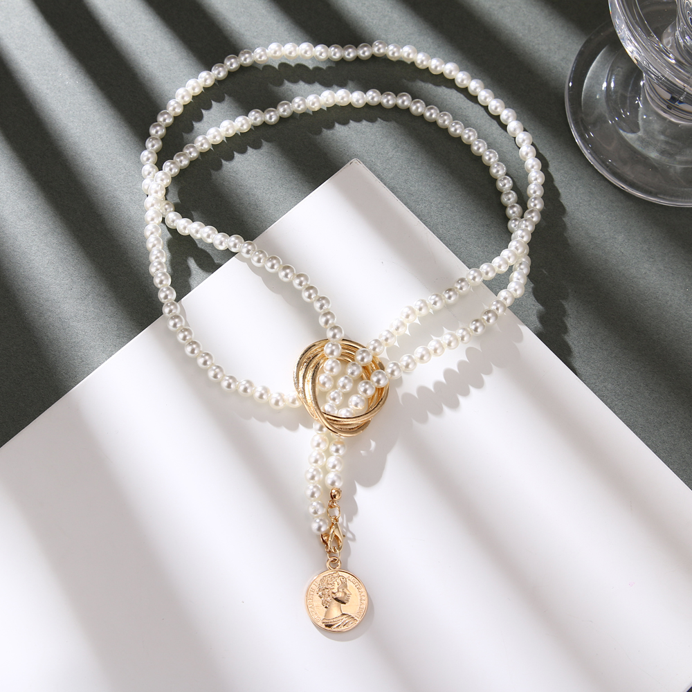 Fleepmart 2024 Vintage Pearl Coin Necklace for Women Bohemian Geometric Pearl Chain Twisted Alloy Pendant Necklace Wedding Jewelry Gift