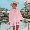 Fleepmart 2024 White Mesh Dress Bikini Cover-ups Sexy See Through Hollow Out Tassel Dress Women Clothing Beach Wear Swim Suit Cover Up