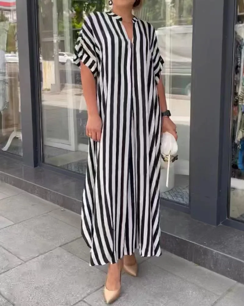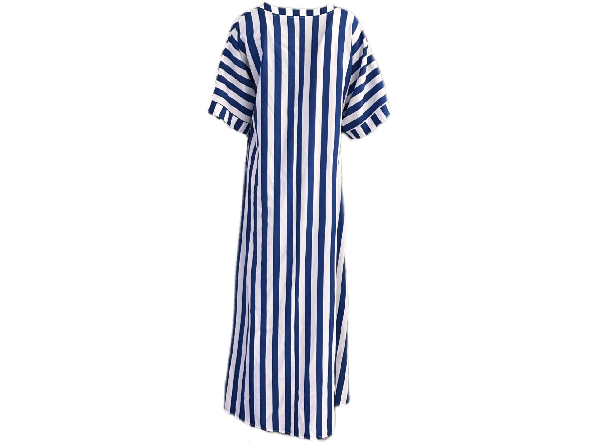 Fleepmart 2024Europe and America Plus Size Women’s Cross border Summer New Product Split Casual Stripe Short sleeved Dress
