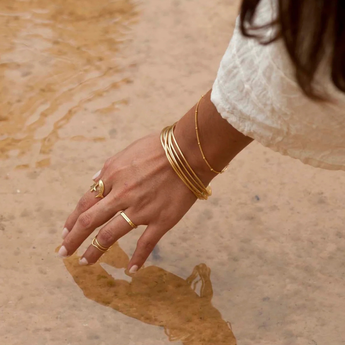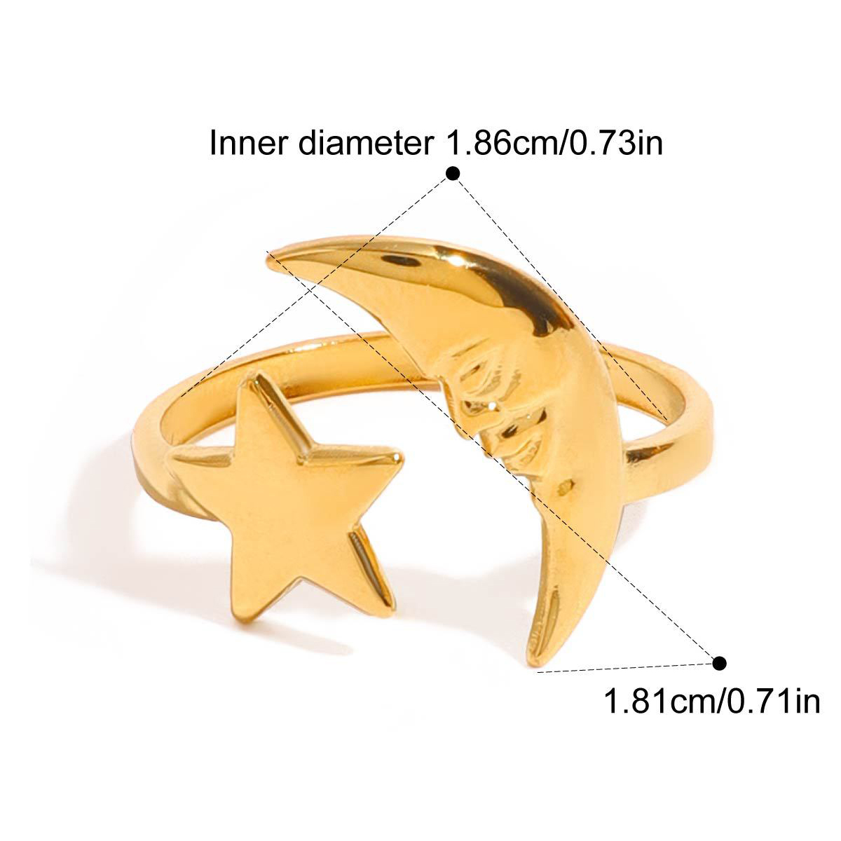 Fleepmart 2025 Minimalist Stainless Steel Star Moon Open Ring 18K Gold Plated Thin Finger Jewelry Basic Style