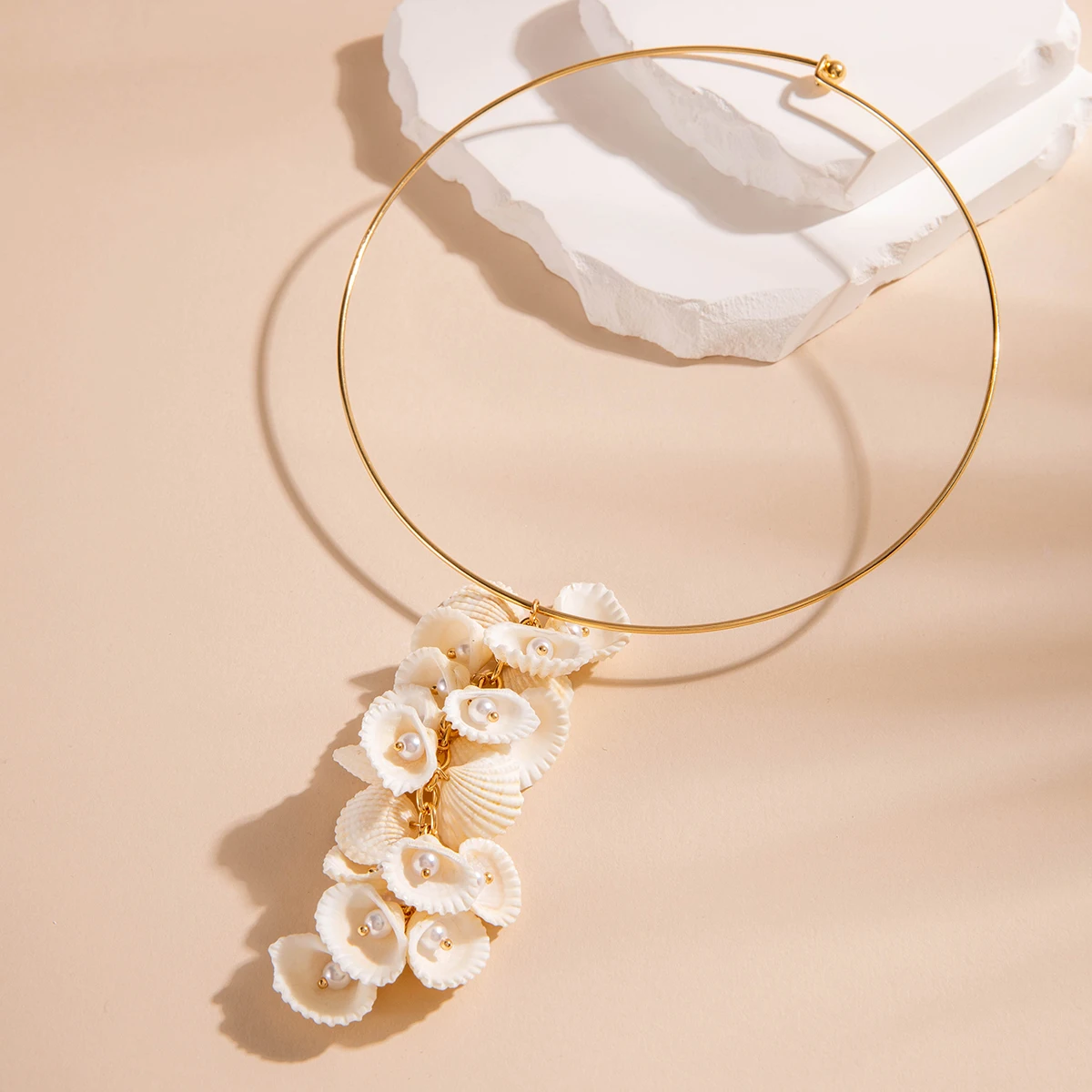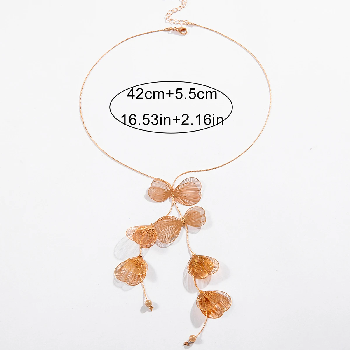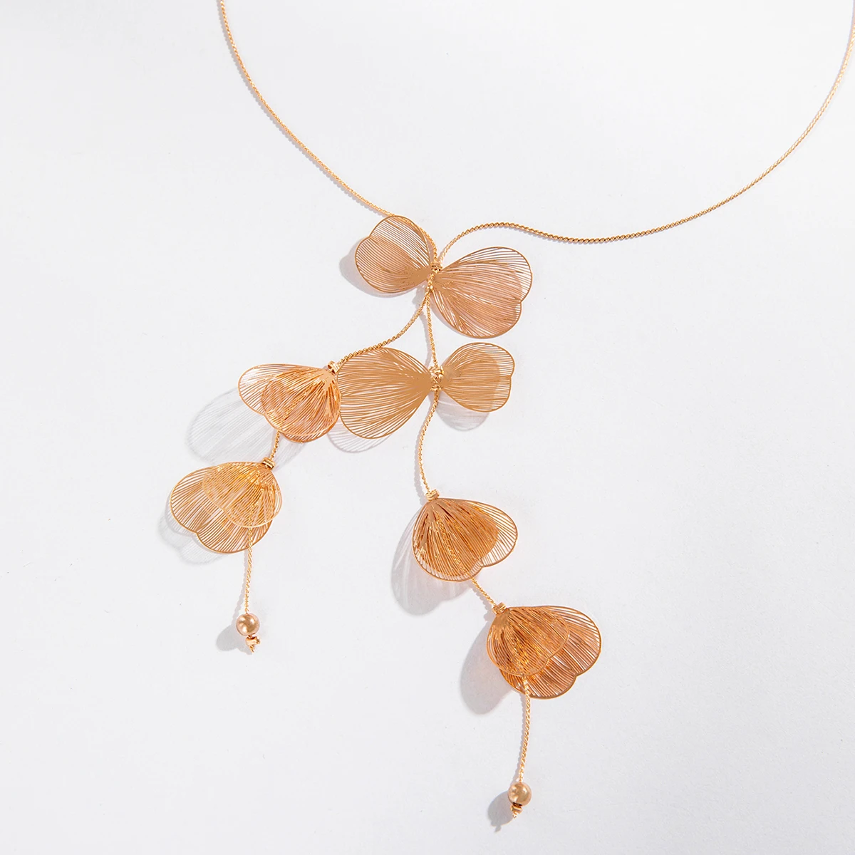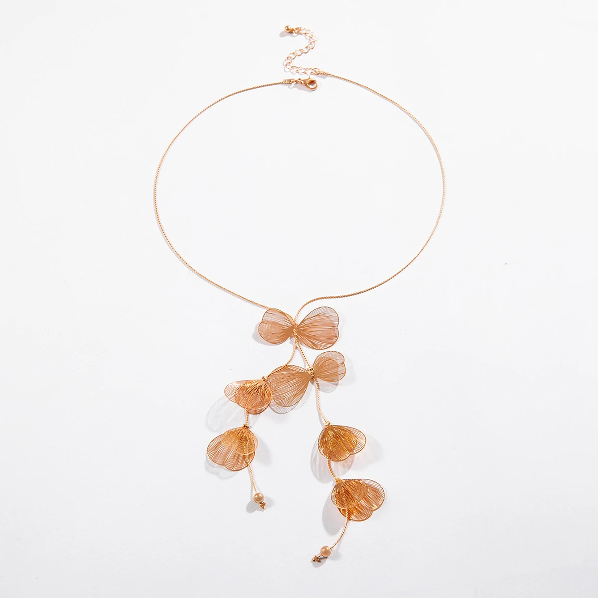 Fleepmart 2025 New Fashion Gold Color Leaf Shape Petals Charm Adjustable Long Necklace for Women Party Jewelry Necklace Accessories