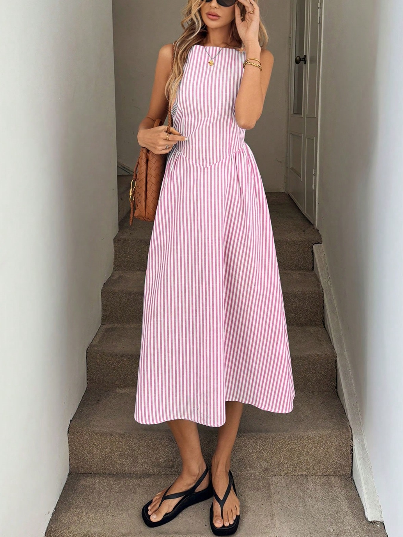 Fleepmart 2025 new slimming summer fresh vertical striped sleeveless dress with elegant temperament