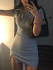 Fleepmart 2025 Short Sleeve Slit Sexy Mini Dress Summer Women Fashion Streetwear Outfits Cute Solid Y2K Party Clothing