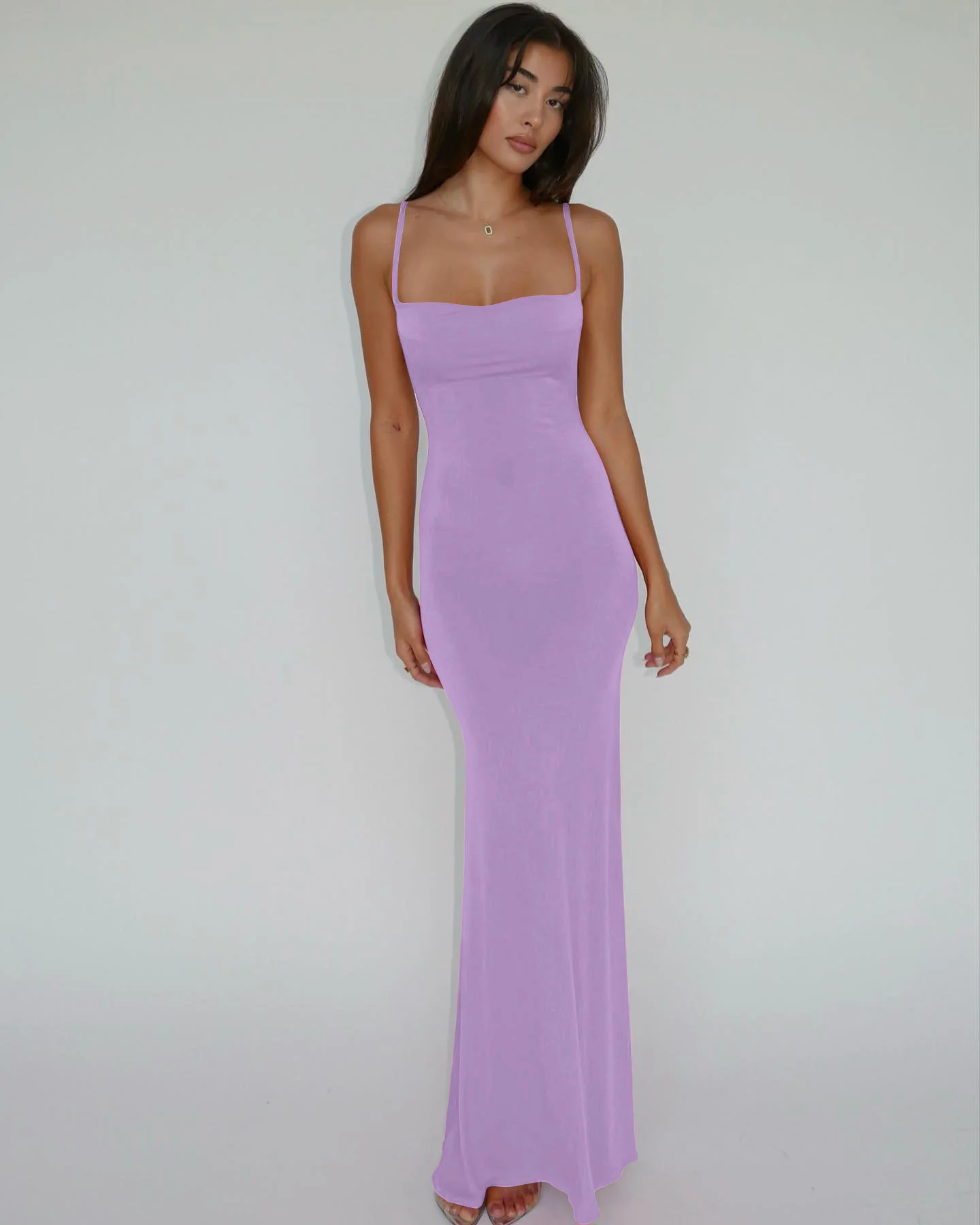Fleepmart 2025 Spring Solid Sleeveless Backless Elegant Sexy Bodycon Y2K Maxi Prom Dress Women Clothes Birthday Party Casual Y2K