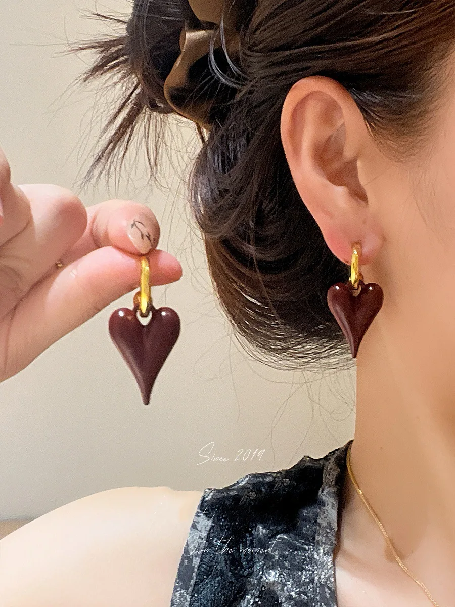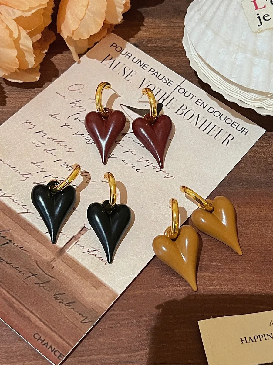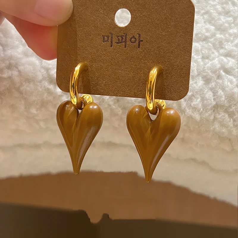 Fleepmart 2025 Trendy Heart Stud Earrings For Women Korean Elegant Light Luxury Love Dangle Earring Fashion Simple Drop Jewelry Girls Gift