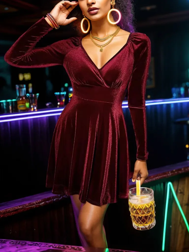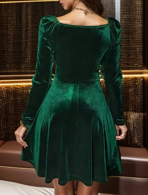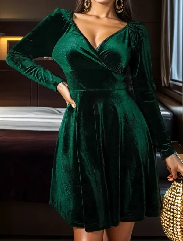 Fleepmart 2025 Women’s Autumn and Winter Long Sleeve Velvet Little Dress, Elegant and Graceful Women’s Dress