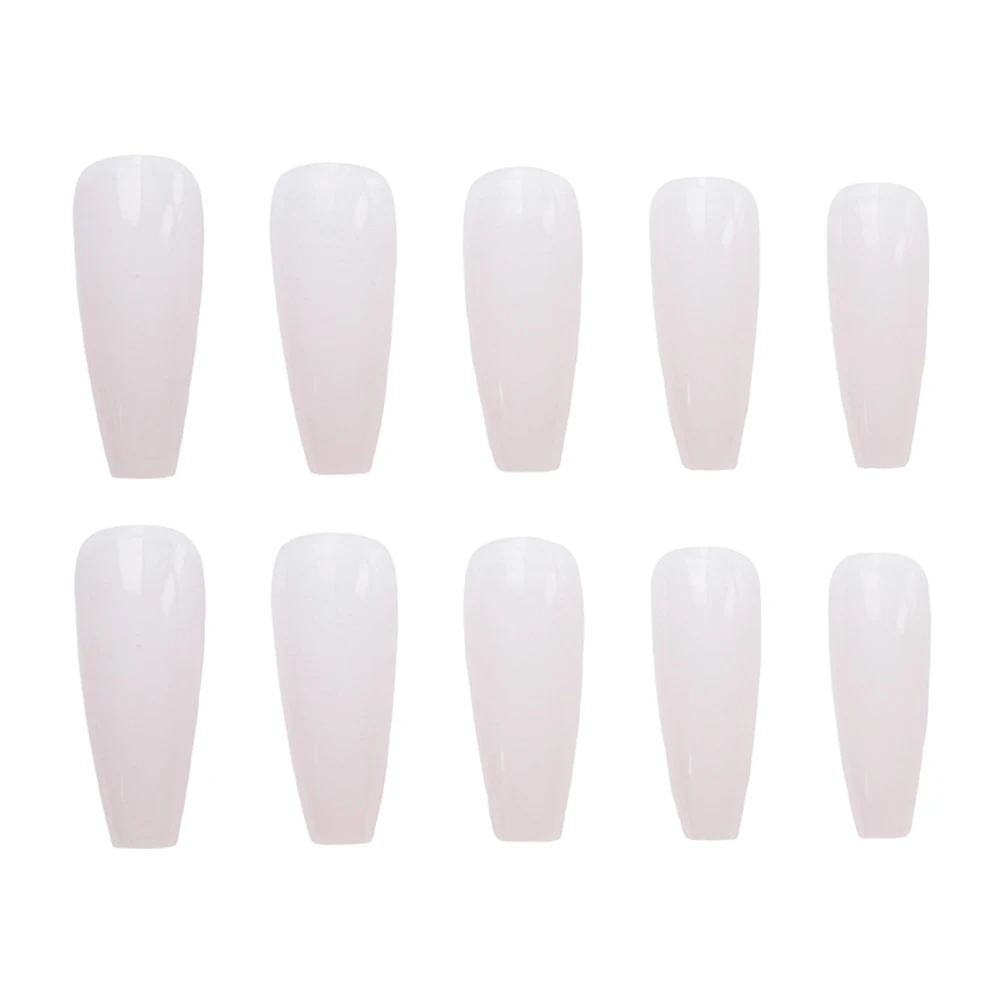 Fleepmart 24PCS/Box 2024 New Artificial Nails With Glue Milky White Pink Gradients Long Ballet Full Cover Acrylic Nail Stick Fake Nail Tips