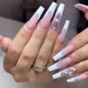 Fleepmart 24Pcs Long Ballet French Girls Nail Art White Fake Nails Manicure Press On Nails False With Designs Artificial Wearing Reusable
