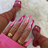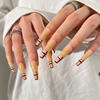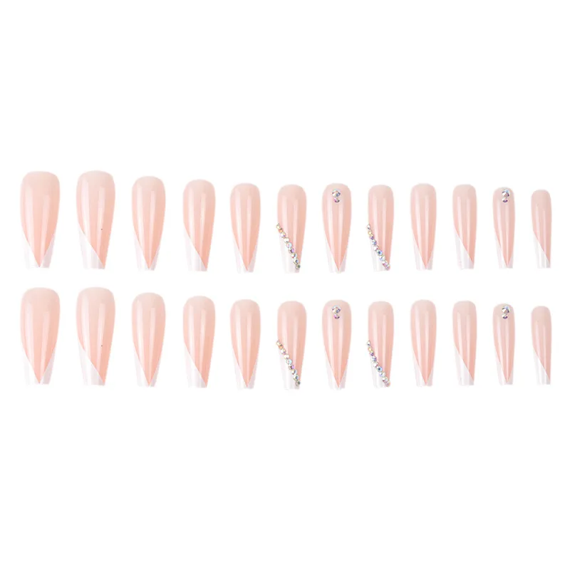 24Pcs/Set Long ballet point drill French Girls nail art white V-shaped fake nails patch new manicure Press On Nails With Designs Artificial Wearing Reusable False Nails