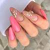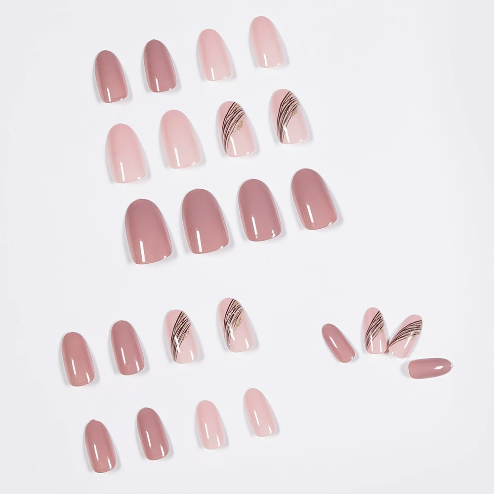Fleepmart 24Pcs/Set Fake Nails With Glue Full Cover Nail Tips Press On Med Nails DIY Manicure Oval Head False Nails Pink Almond Artificial