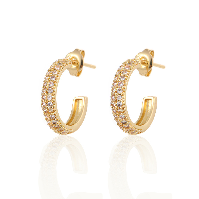 Fleepmart 2PC Fashion Gold Silver Color Crystal Zirconia Piercing Earrings For Women Small Circle Pendant Ear Studs Earring Korean Jewelry