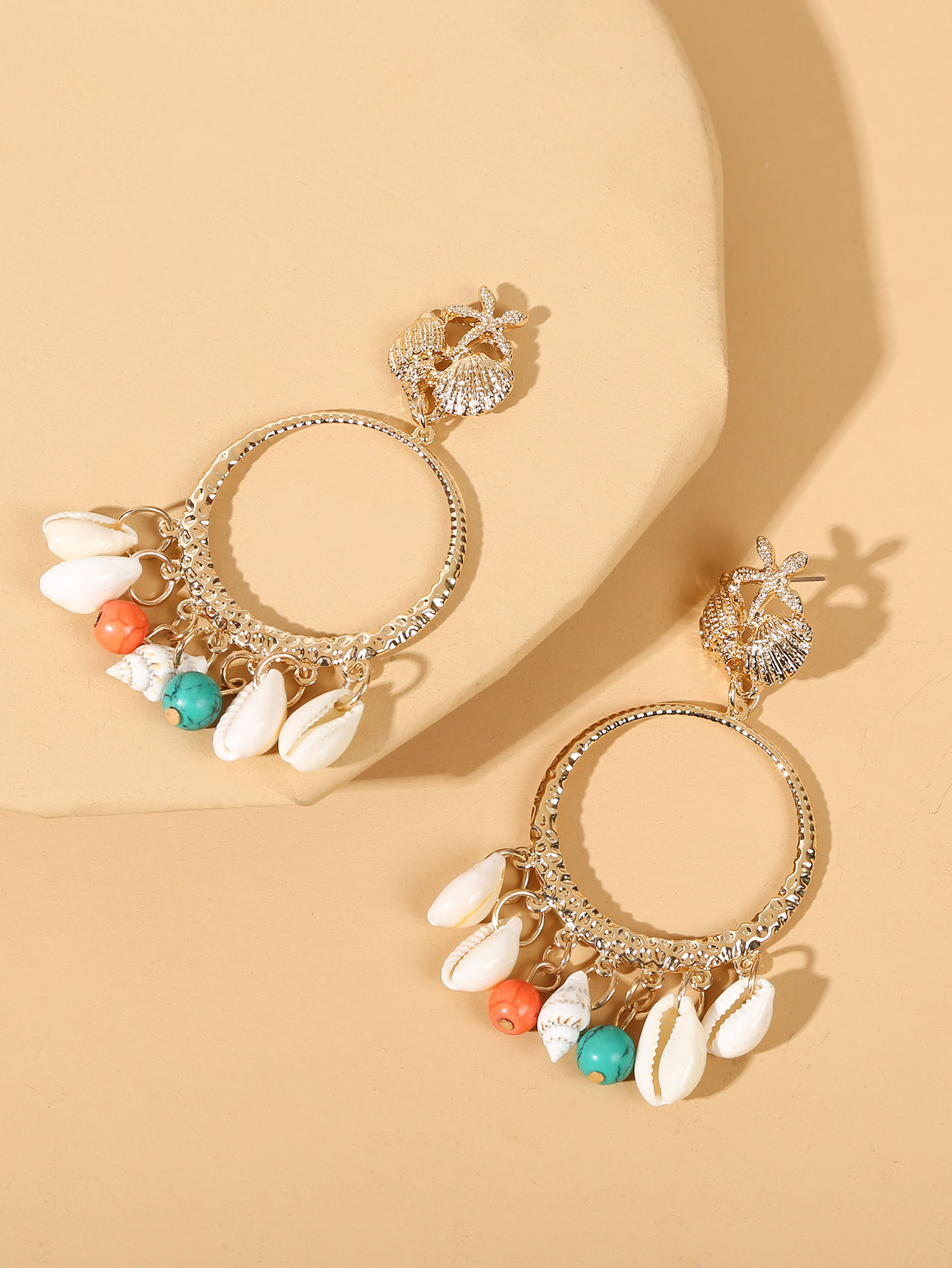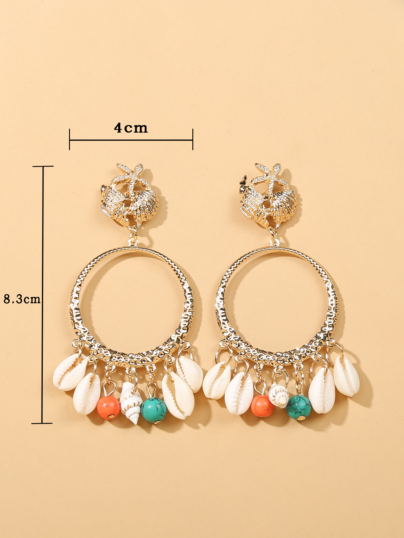 Fleepmart 2pcs bohemian style women’s starfish shell pendant earrings, holiday vacation beach metal accessories