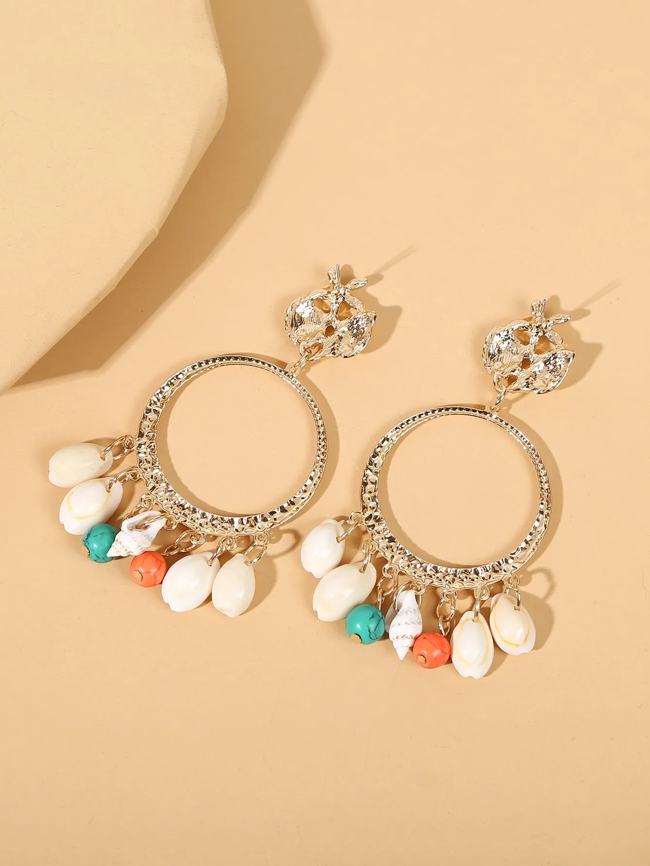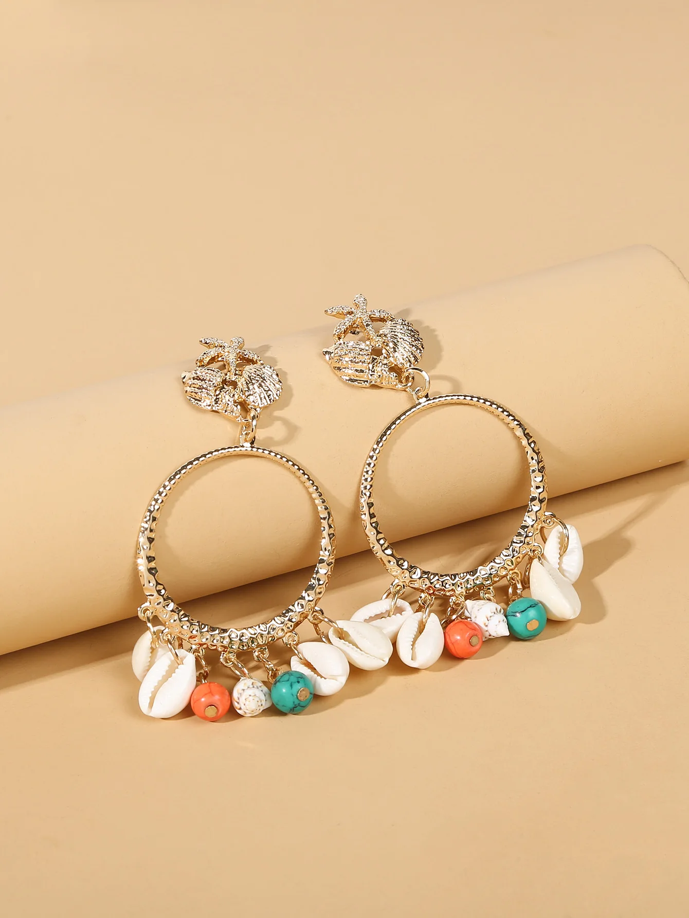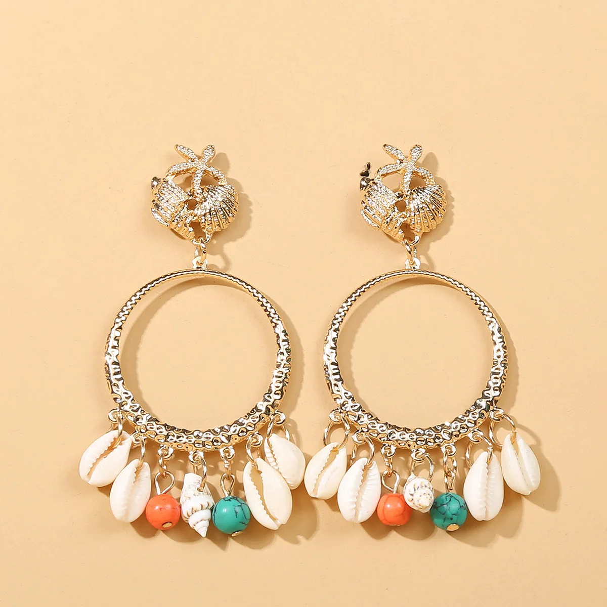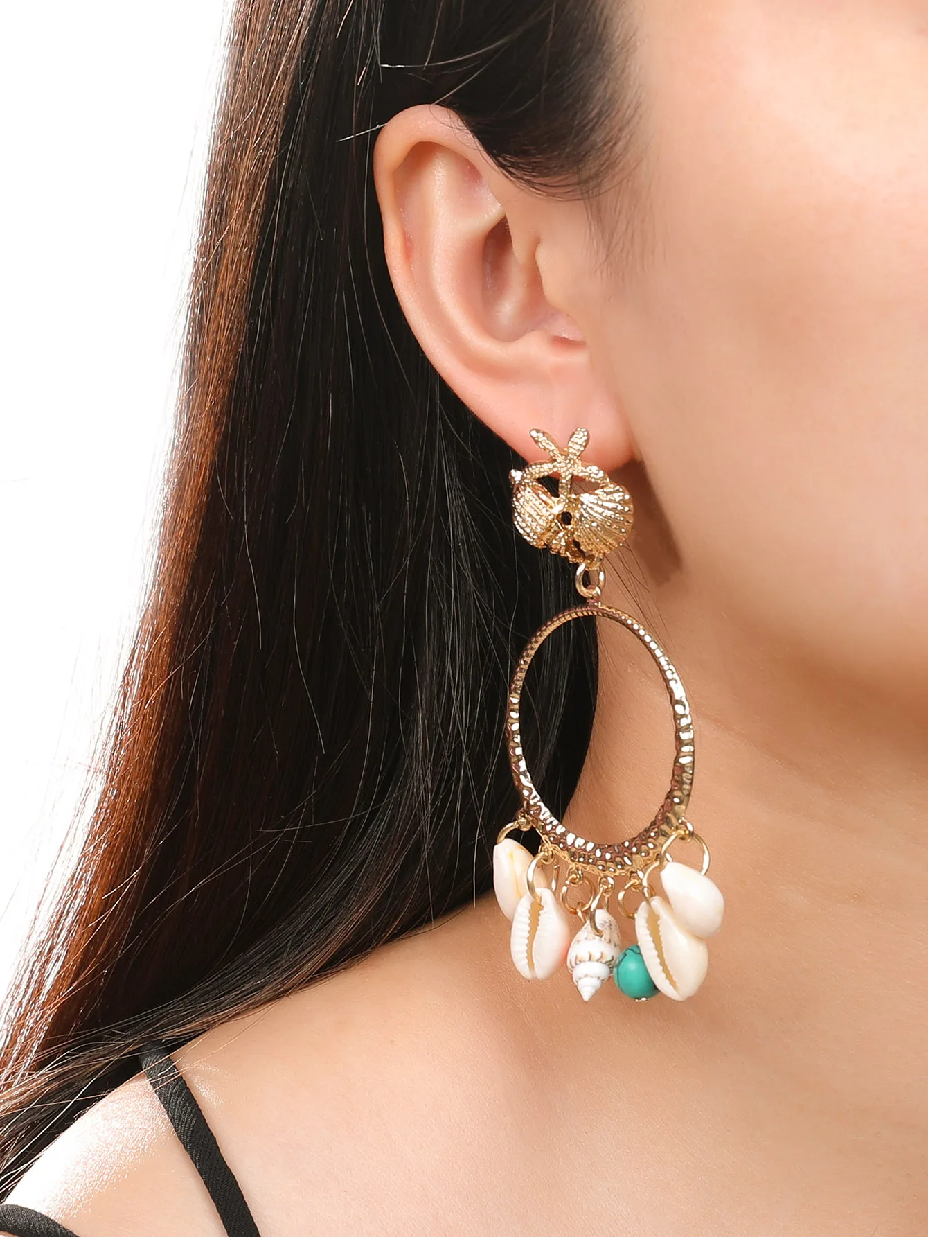 Fleepmart 2pcs bohemian style women’s starfish shell pendant earrings, holiday vacation beach metal accessories