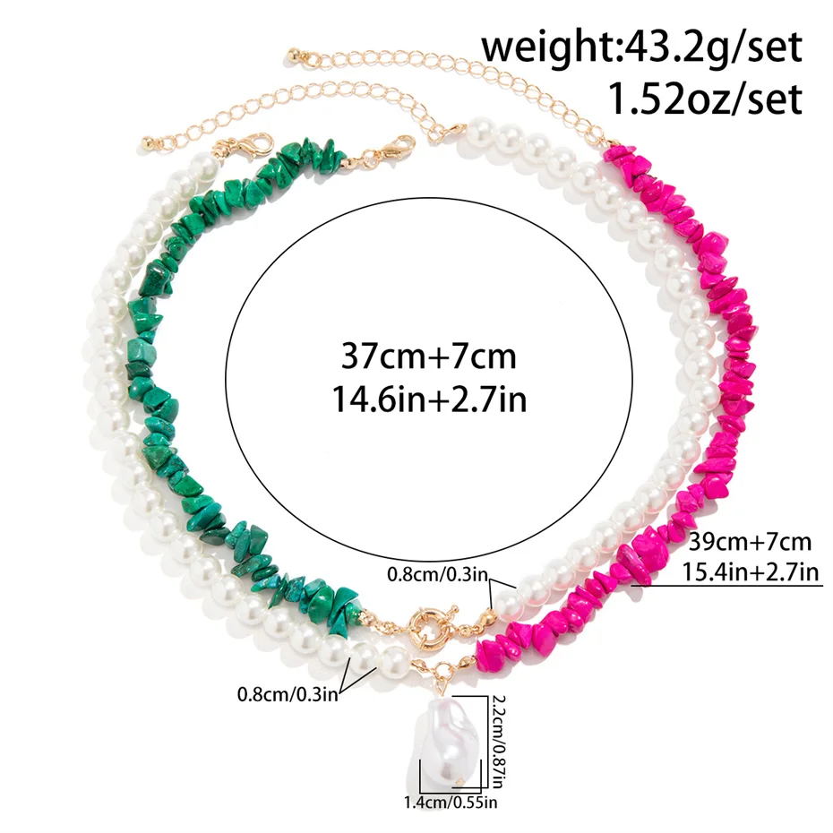 Fleepmart 2Pcs Boho Colorful Irregular Stone Chain Necklace Women Elegant OT Buckle Imitation Pearl Pendant Choker Aesthetic Jewelry Gift