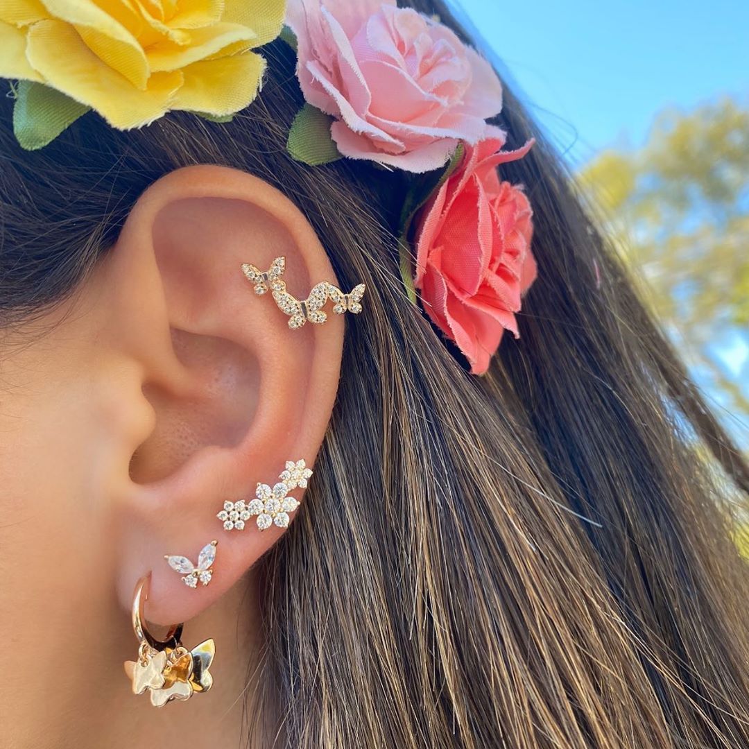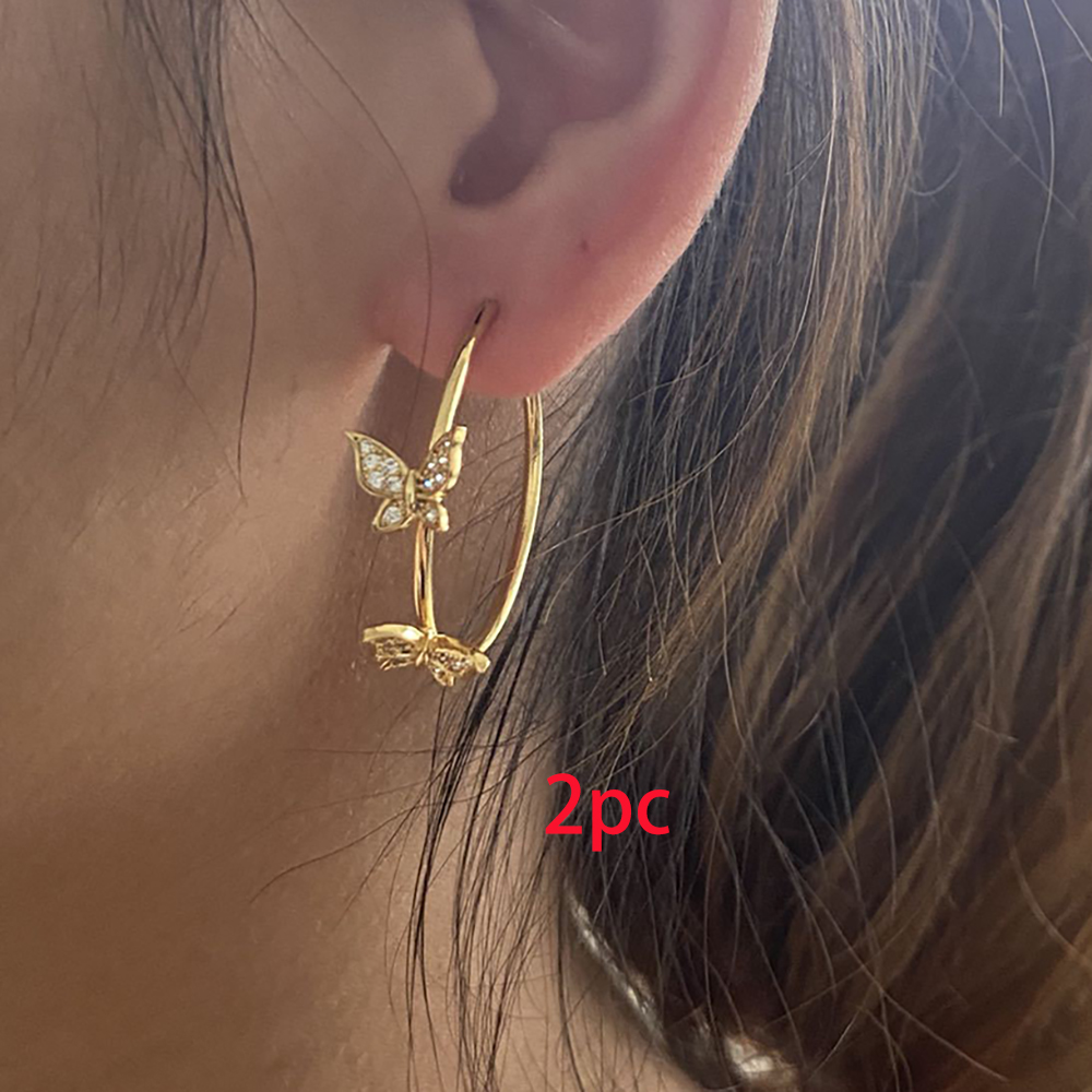 Fleepmart 2PCS High Quality Stainless Steel Gold Color Butterfly Hoop Earring For Women Crystal Zirconia Piercing Earring Wedding Jewelry