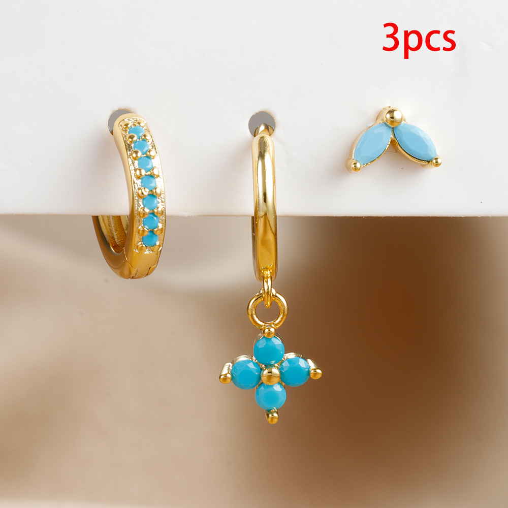 Fleepmart 3PCS Exquisite Green Zircon Hanging Earrings Set for Women Stainless Steel Flower Dangle Earring Cartilage Piercing JewelryThere are no reviews yet