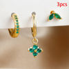 Fleepmart 3PCS Exquisite Green Zircon Hanging Earrings Set for Women Stainless Steel Flower Dangle Earring Cartilage Piercing JewelryThere are no reviews yet