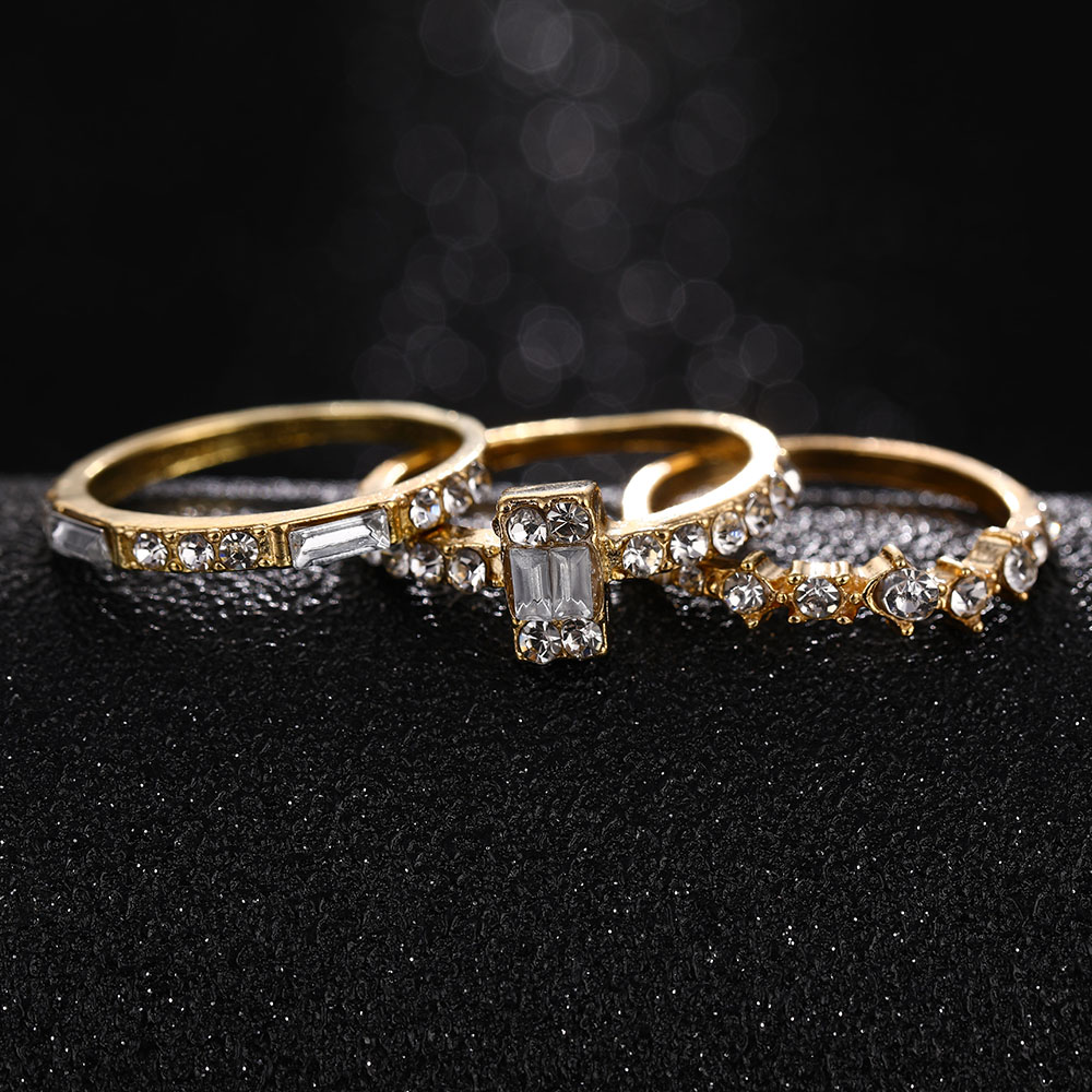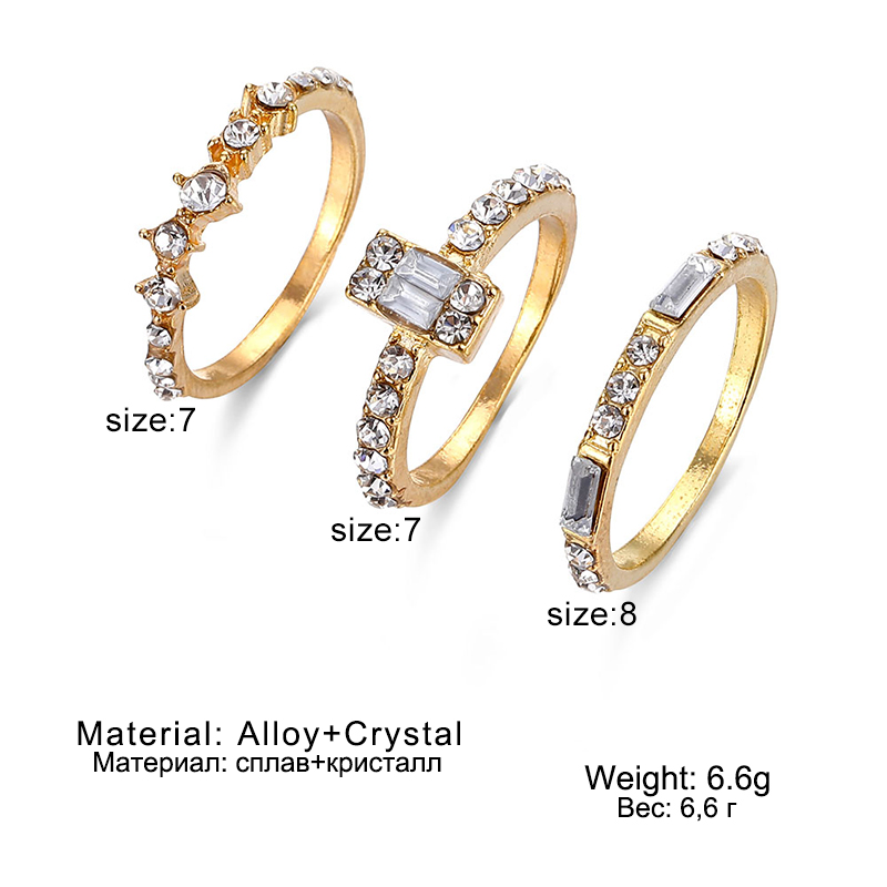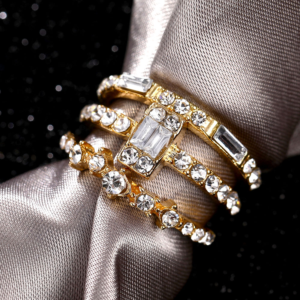 Fleepmart 3Pcs / Set Crystal Zircon Wedding Ring 2023 Fashion Women Gold Color Women Twist Ring Set Jewelry Gift