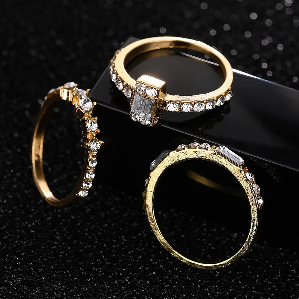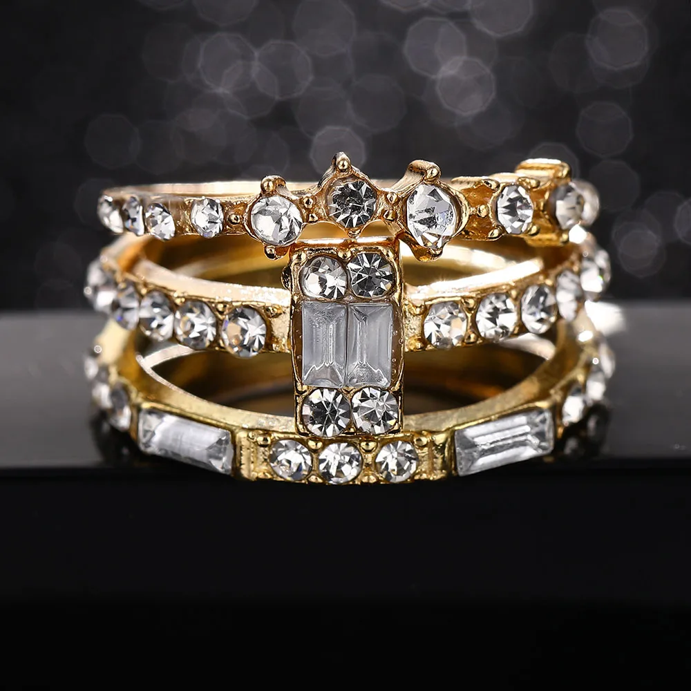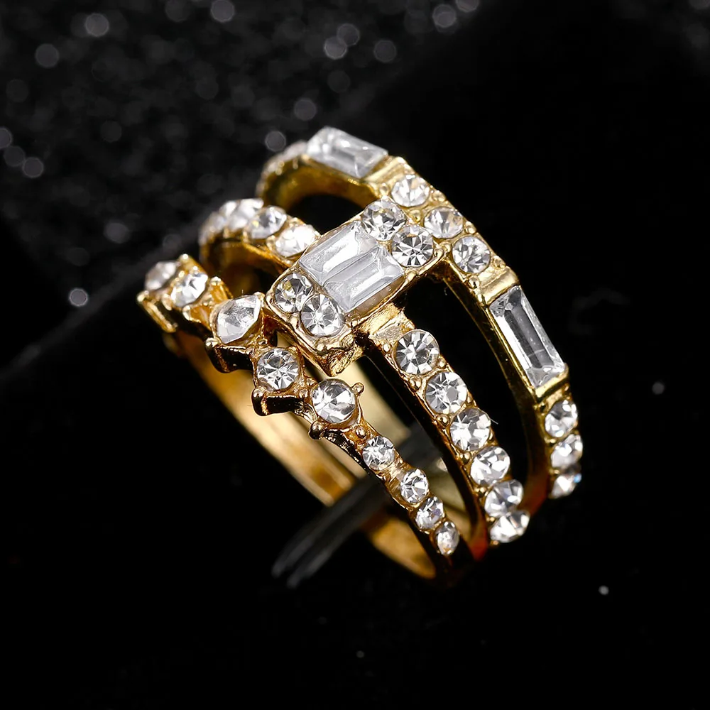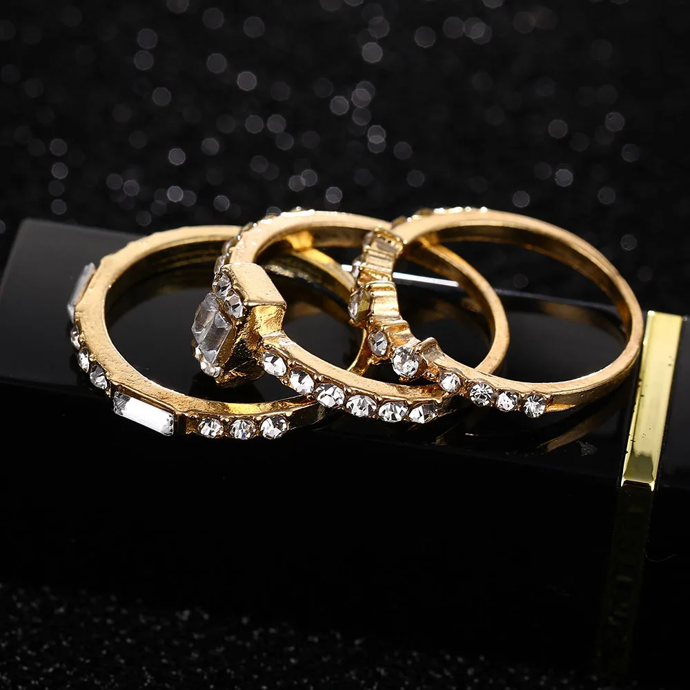 Fleepmart 3Pcs / Set Crystal Zircon Wedding Ring 2023 Fashion Women Gold Color Women Twist Ring Set Jewelry Gift