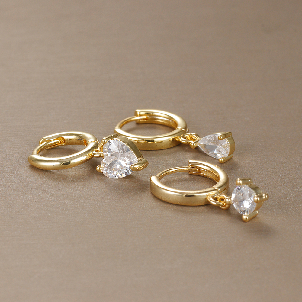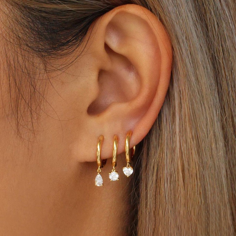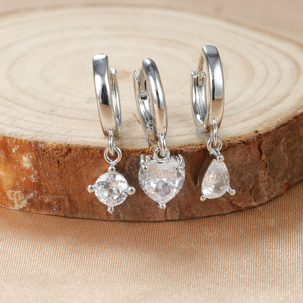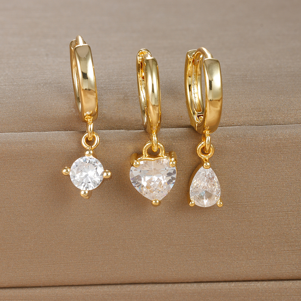 Fleepmart 3PCS Stainless Steel Zircon Heart Minimal Hoop Earrings Set For Women Geometry Round Water Drop Pendant Earring Fashion Jewelry